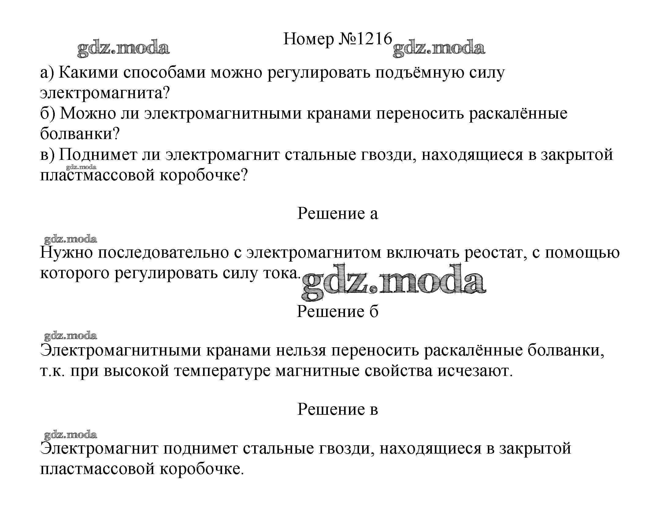ГДЗ решение к заданию № 1216 Физика 7-9 классы сборник вопросов и задач Марон А.Е. Дрофа 2013 ФГОС бесплатно на гдз.мода!