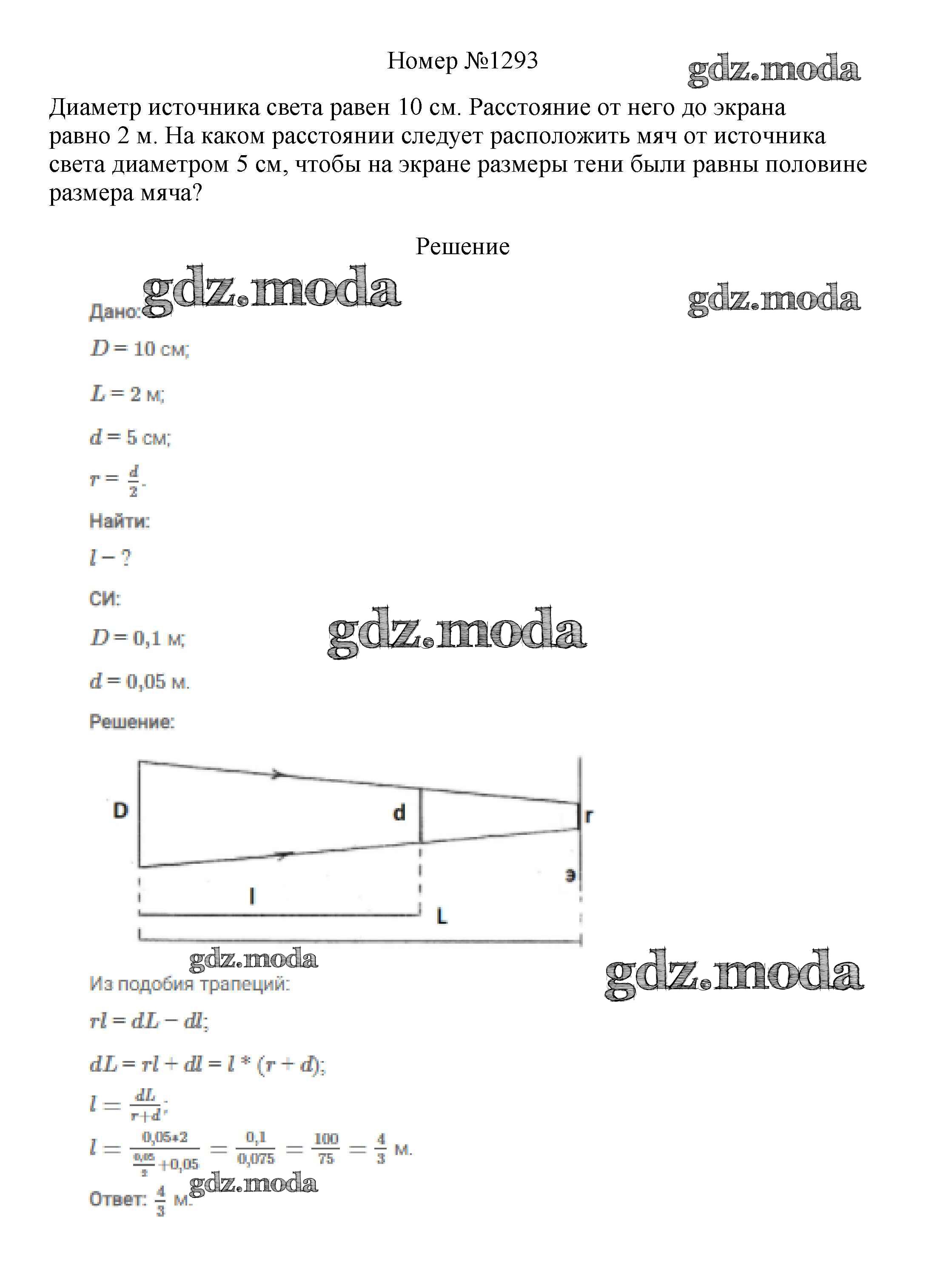 ОТВЕТ на задание № 1293 Сборник вопросов и задач по Физике 7-9 класс Марон Вертикаль