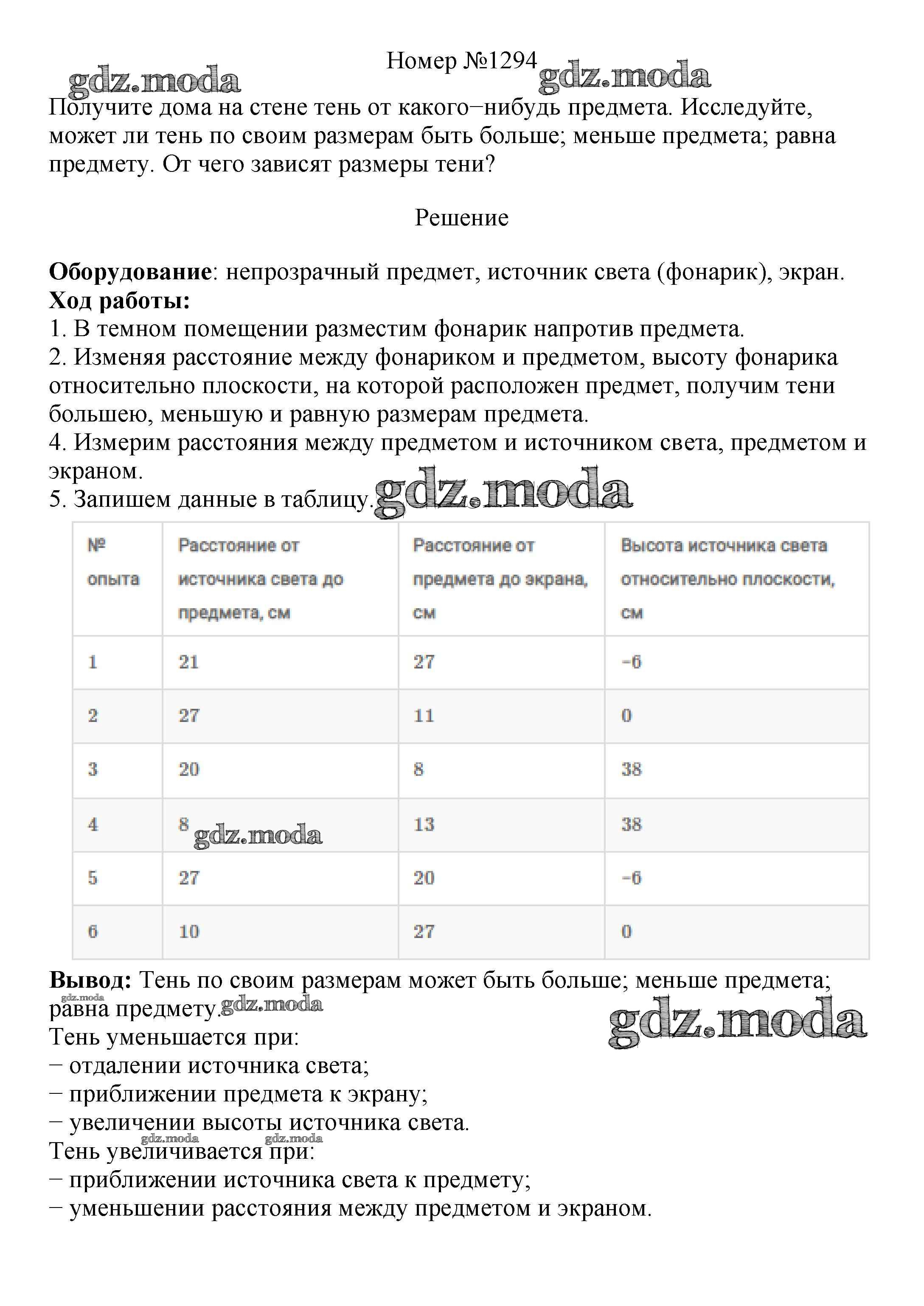 ОТВЕТ на задание № 1294 Сборник вопросов и задач по Физике 7-9 класс Марон Вертикаль