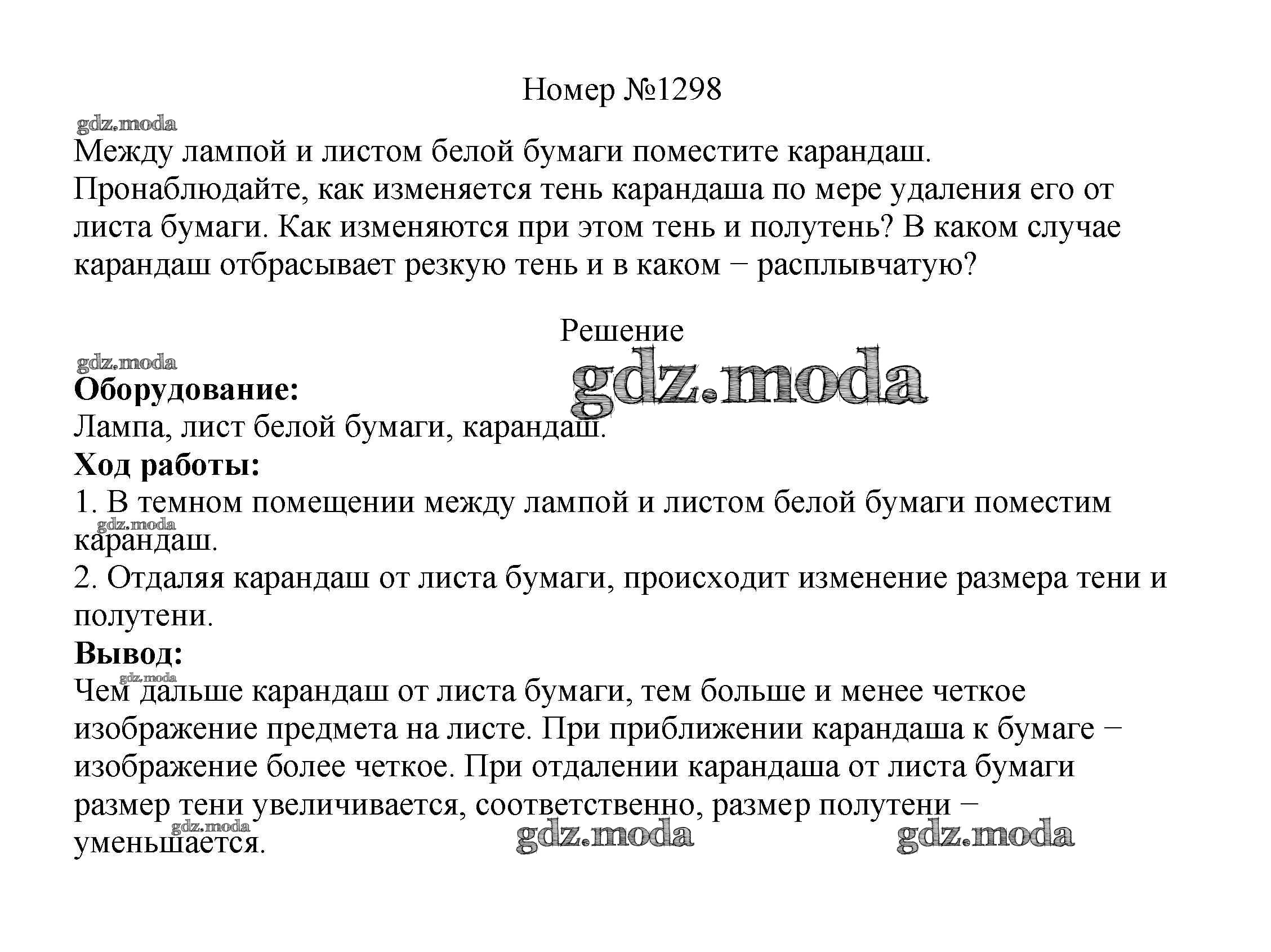 ГДЗ решение к заданию № 1298 Физика 7-9 классы сборник вопросов и задач Марон А.Е. Дрофа 2013 ФГОС бесплатно на гдз.мода!