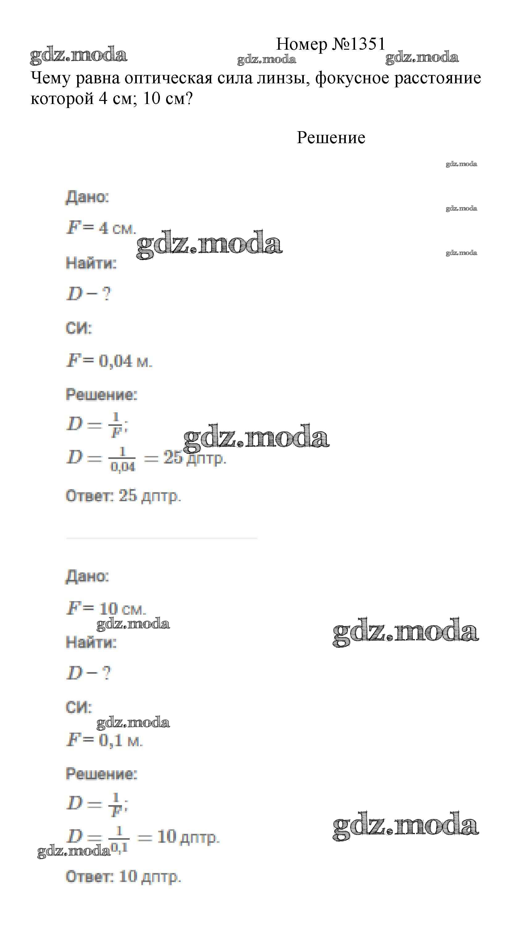 ОТВЕТ на задание № 1351 Сборник вопросов и задач по Физике 7-9 класс Марон Вертикаль