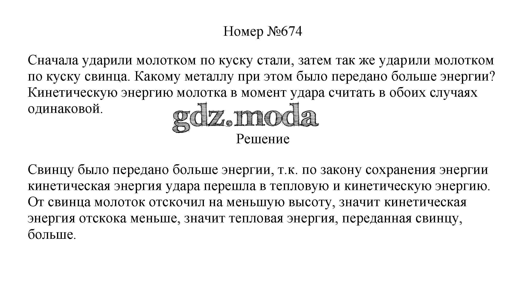 ГДЗ решение к заданию № 674 Физика 7-9 классы сборник вопросов и задач Марон А.Е. Дрофа 2013 ФГОС бесплатно на гдз.мода!