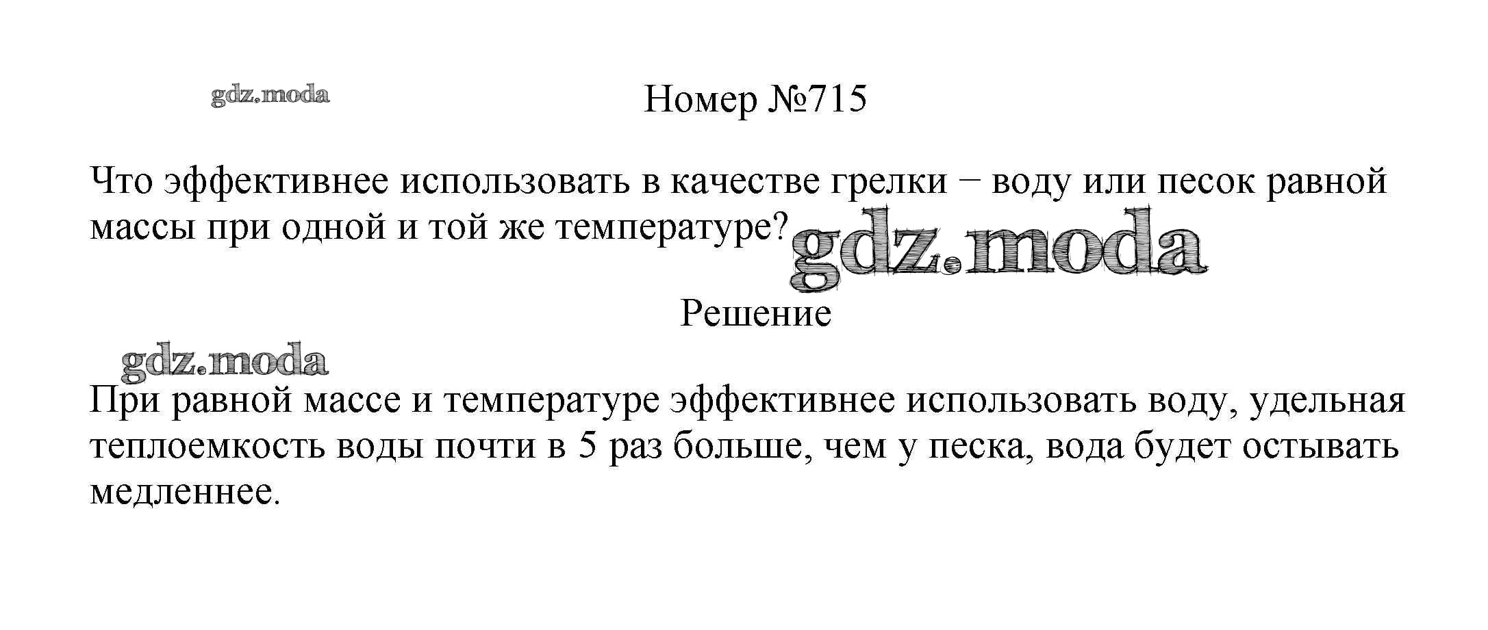 ГДЗ решение к заданию № 715 Физика 7-9 классы сборник вопросов и задач Марон А.Е. Дрофа 2013 ФГОС бесплатно на гдз.мода!