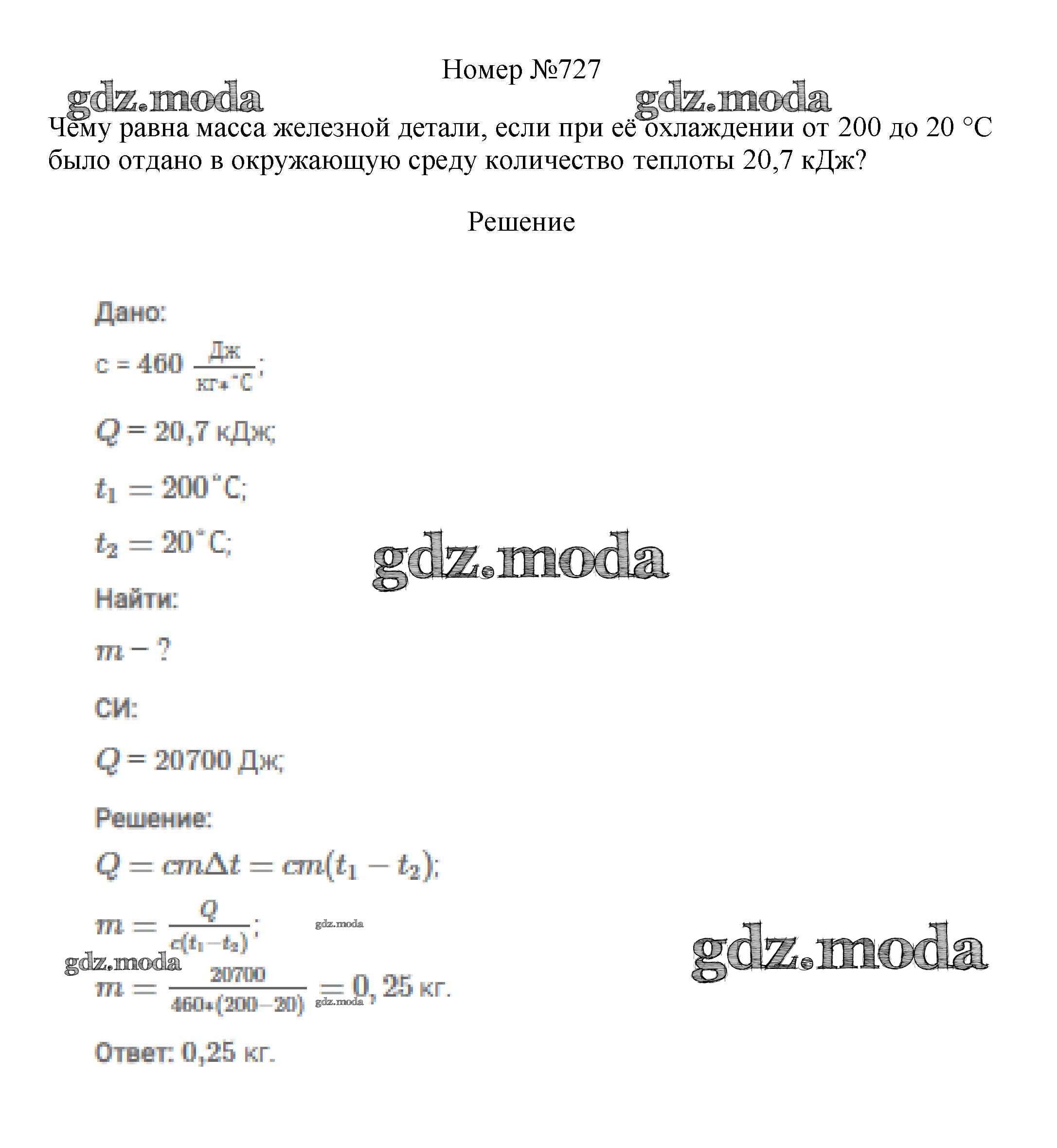 ГДЗ решение к заданию № 727 Физика 7-9 классы сборник вопросов и задач Марон А.Е. Дрофа 2013 ФГОС бесплатно на гдз.мода!