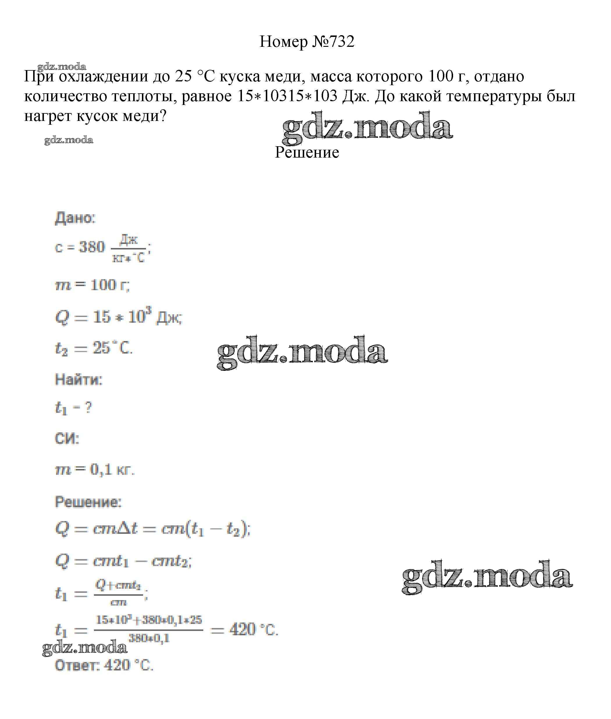 ГДЗ решение к заданию № 732 Физика 7-9 классы сборник вопросов и задач Марон А.Е. Дрофа 2013 ФГОС бесплатно на гдз.мода!