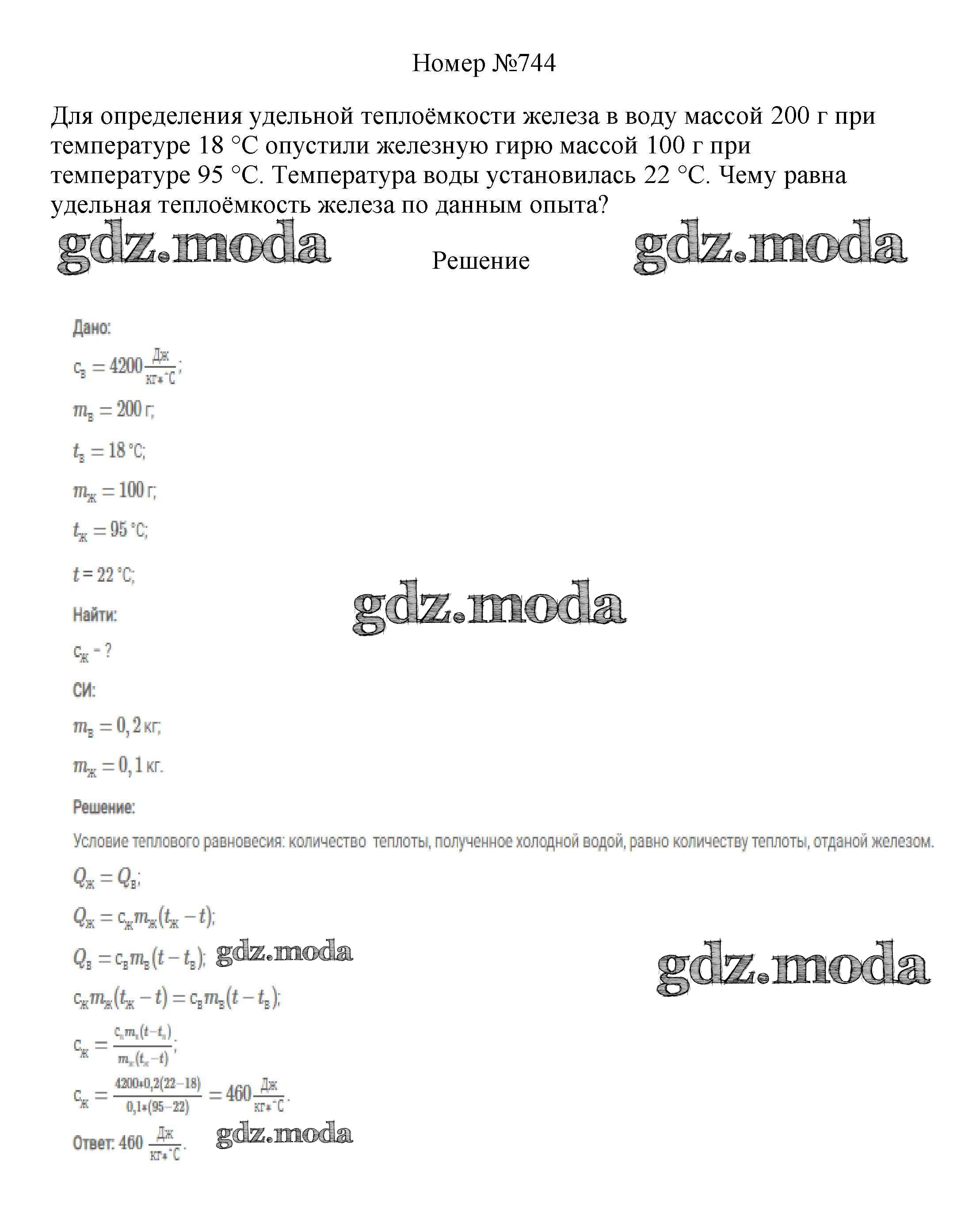 ОТВЕТ на задание № 744 Сборник вопросов и задач по Физике 7-9 класс Марон Вертикаль