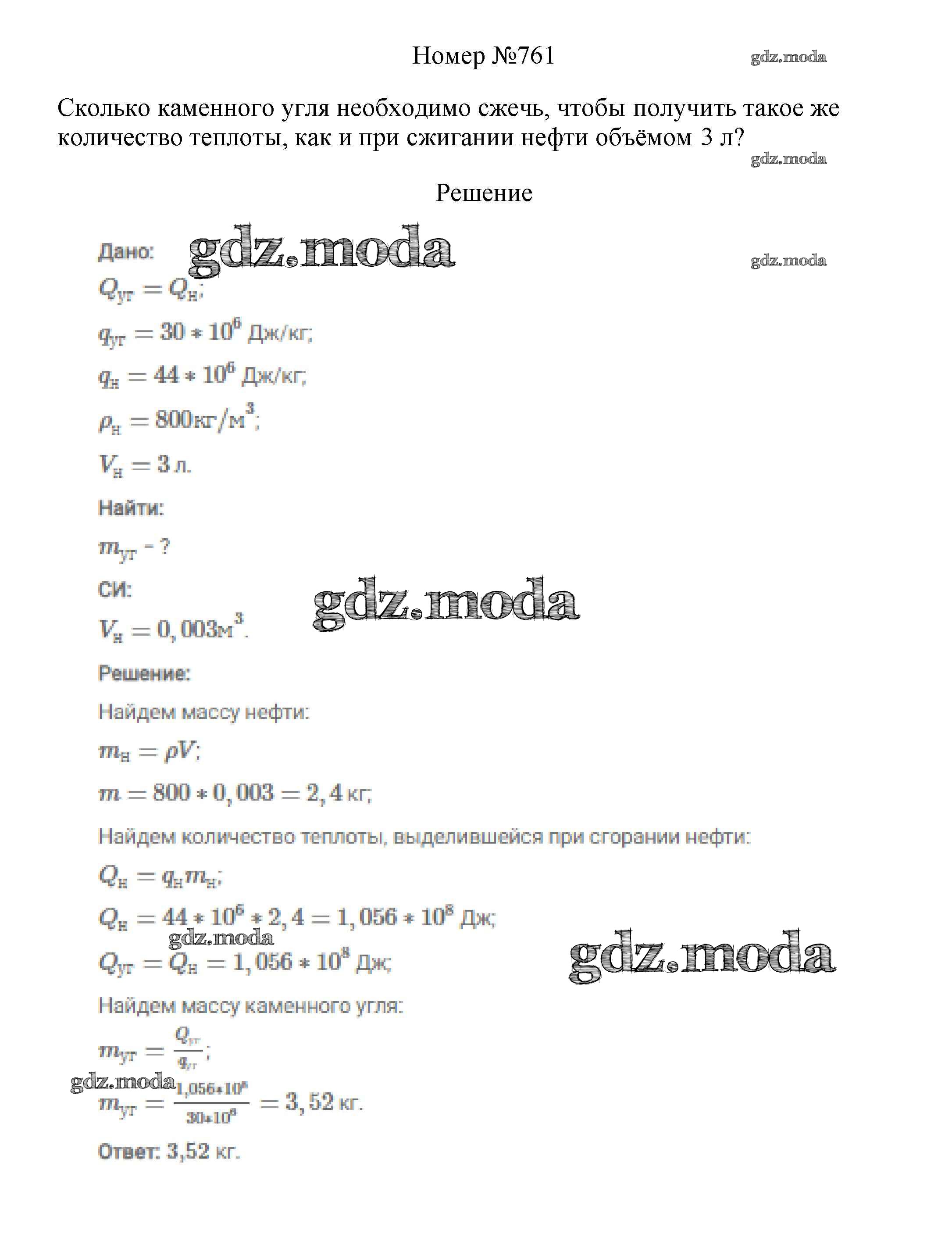 ОТВЕТ на задание № 761 Сборник вопросов и задач по Физике 7-9 класс Марон Вертикаль