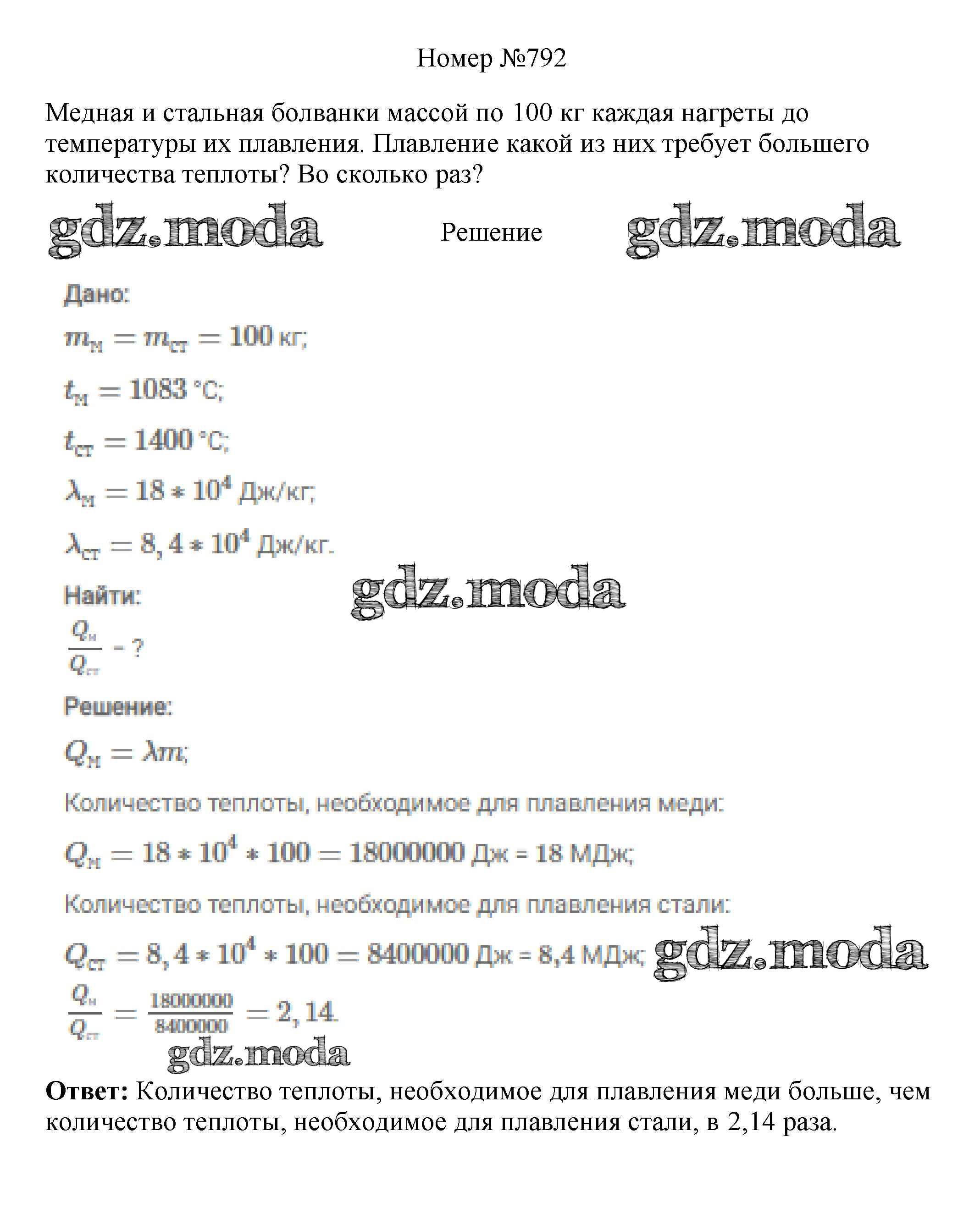 ГДЗ решение к заданию № 792 Физика 7-9 классы сборник вопросов и задач Марон А.Е. Дрофа 2013 ФГОС бесплатно на гдз.мода!