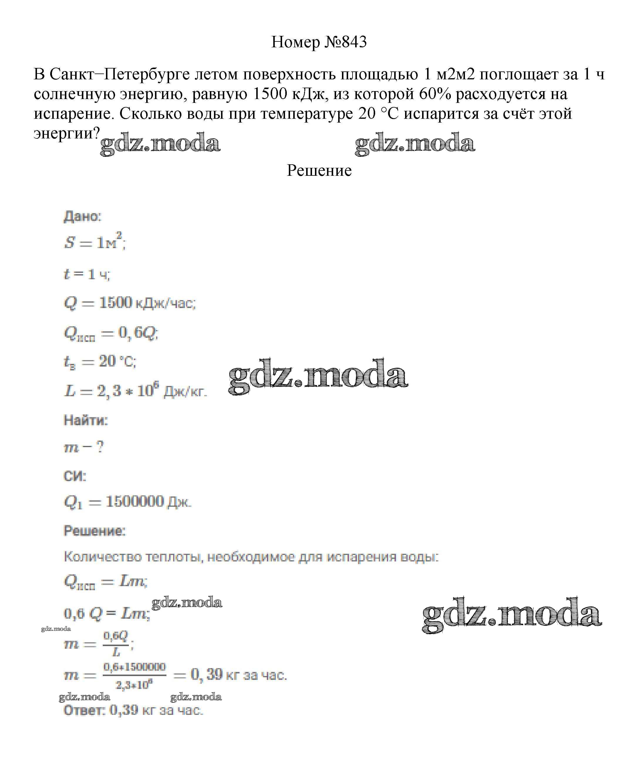 ГДЗ решение к заданию № 843 Физика 7-9 классы сборник вопросов и задач Марон А.Е. Дрофа 2013 ФГОС бесплатно на гдз.мода!