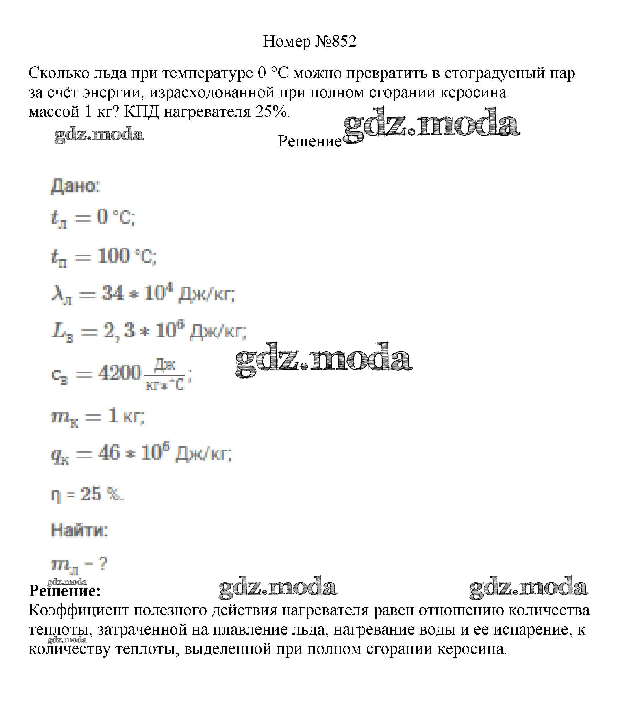 ГДЗ решение к заданию № 852 Физика 7-9 классы сборник вопросов и задач Марон А.Е. Дрофа 2013 ФГОС бесплатно на гдз.мода!