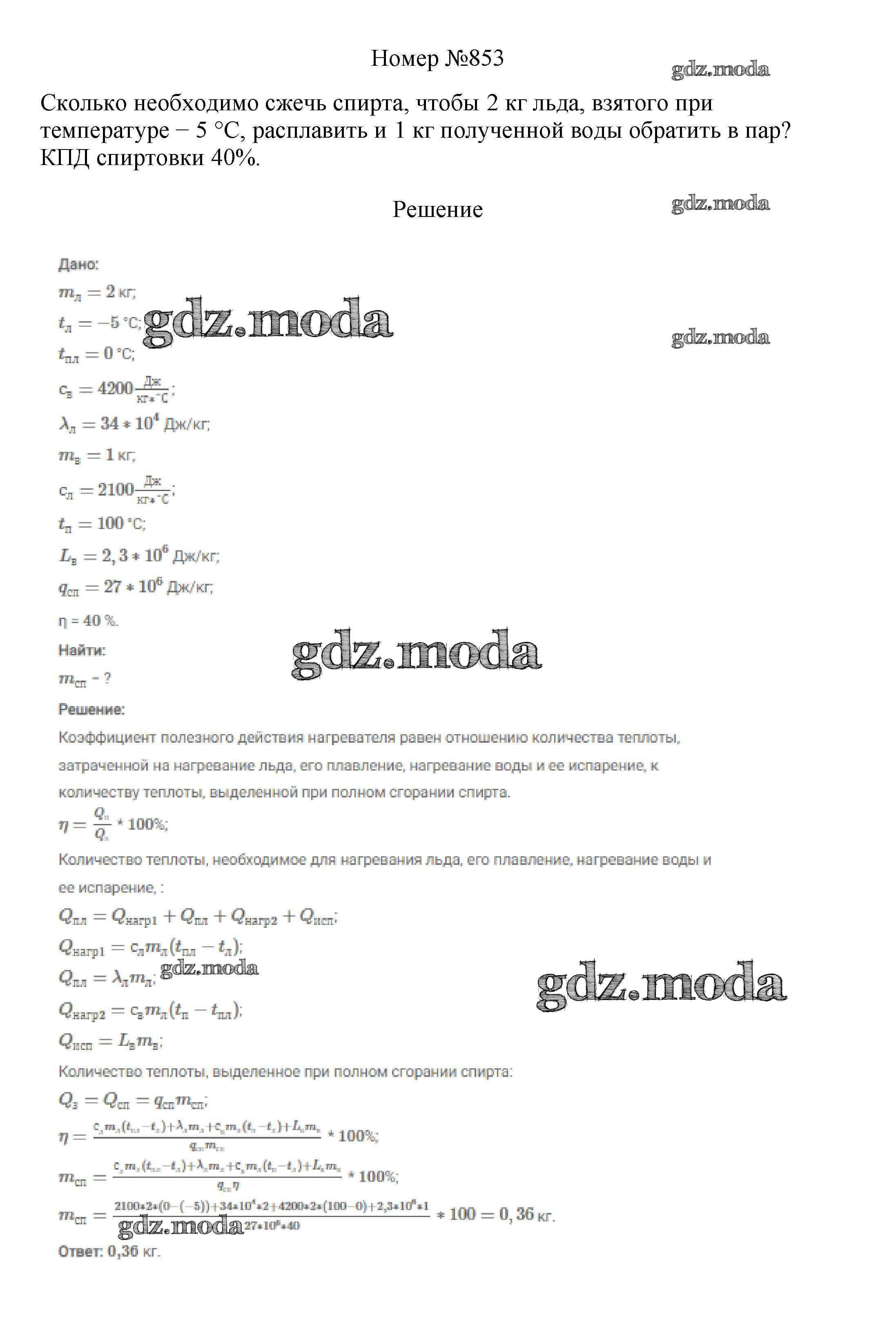 ГДЗ решение к заданию № 853 Физика 7-9 классы сборник вопросов и задач Марон А.Е. Дрофа 2013 ФГОС бесплатно на гдз.мода!