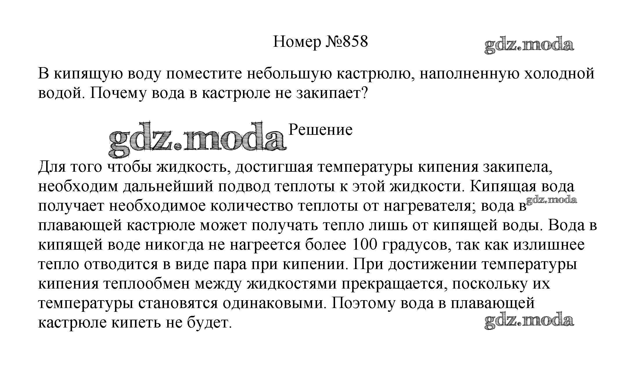 ГДЗ решение к заданию № 858 Физика 7-9 классы сборник вопросов и задач Марон А.Е. Дрофа 2013 ФГОС бесплатно на гдз.мода!