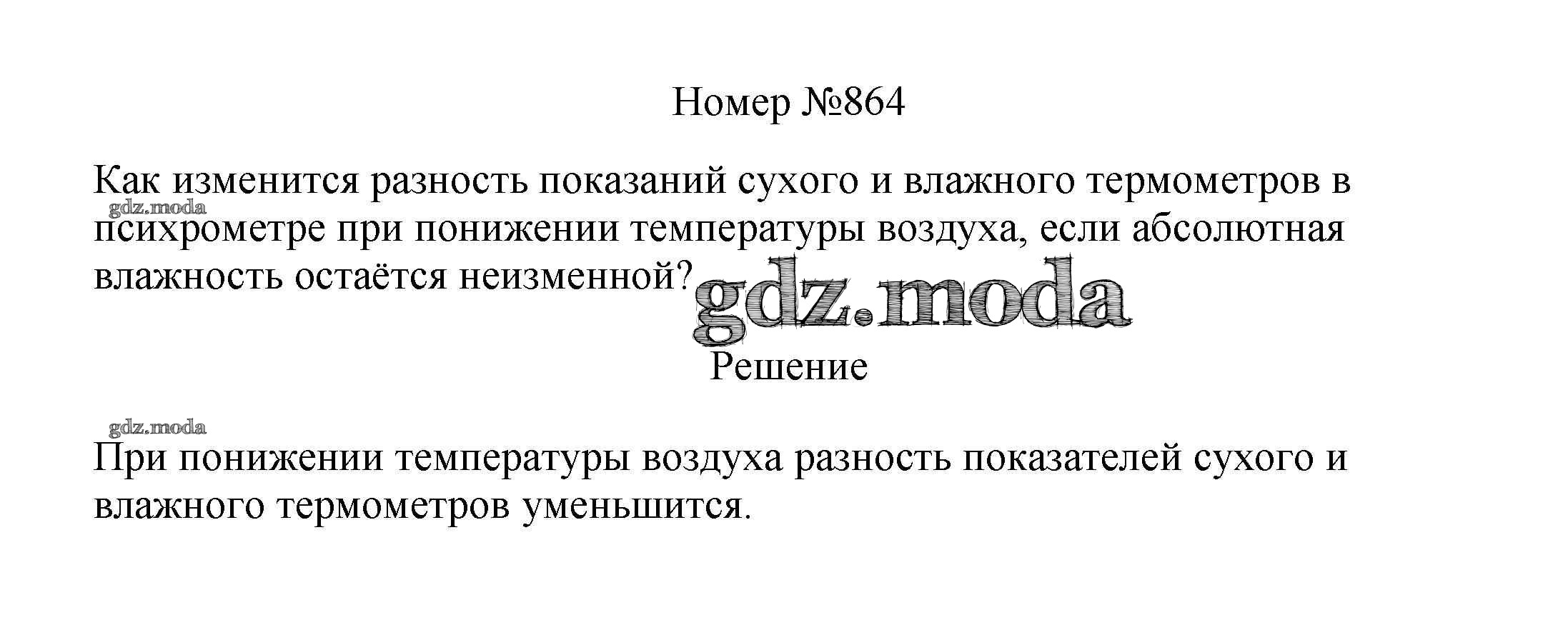 ГДЗ решение к заданию № 864 Физика 7-9 классы сборник вопросов и задач Марон А.Е. Дрофа 2013 ФГОС бесплатно на гдз.мода!