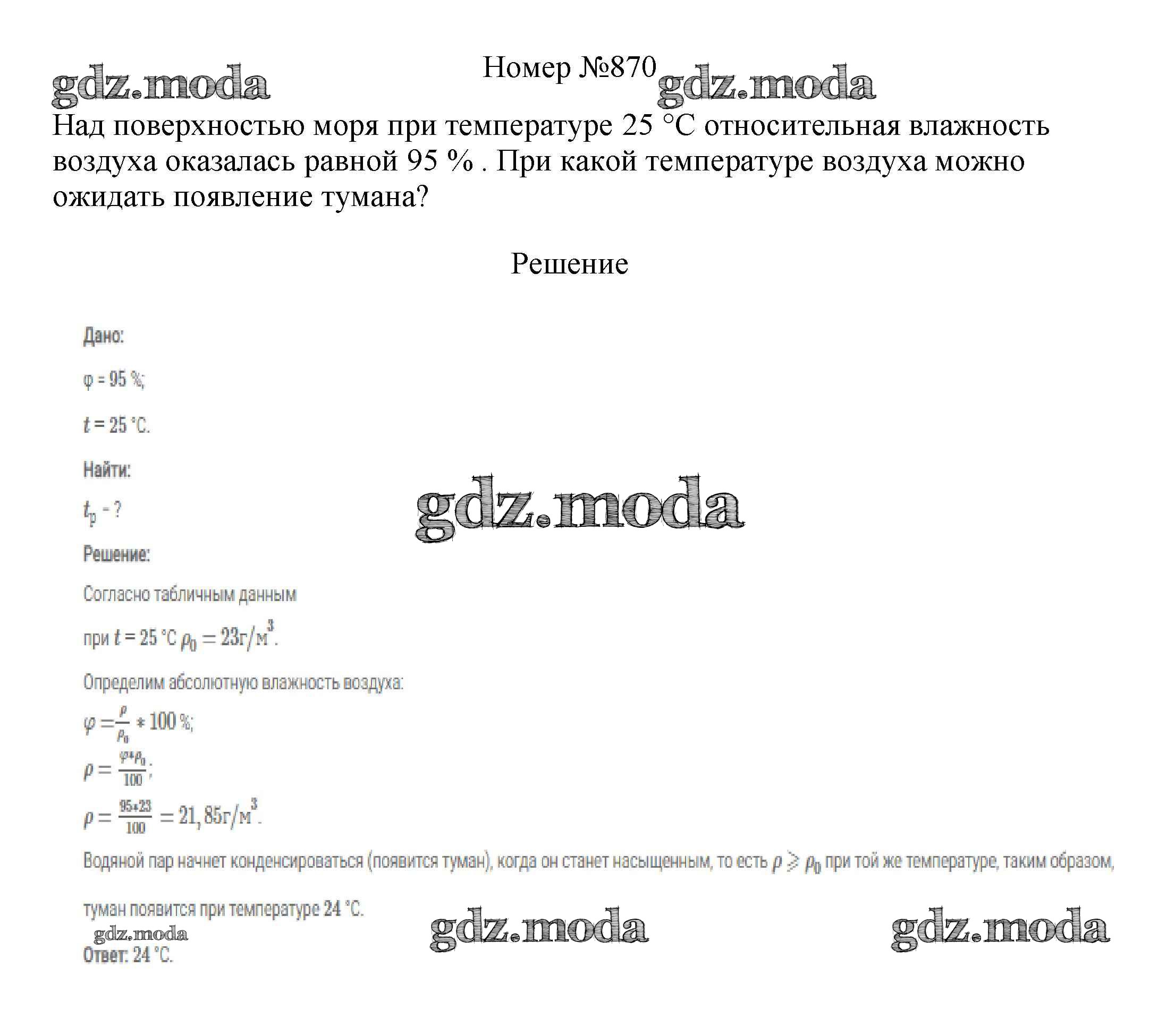 ГДЗ решение к заданию № 870 Физика 7-9 классы сборник вопросов и задач Марон А.Е. Дрофа 2013 ФГОС бесплатно на гдз.мода!