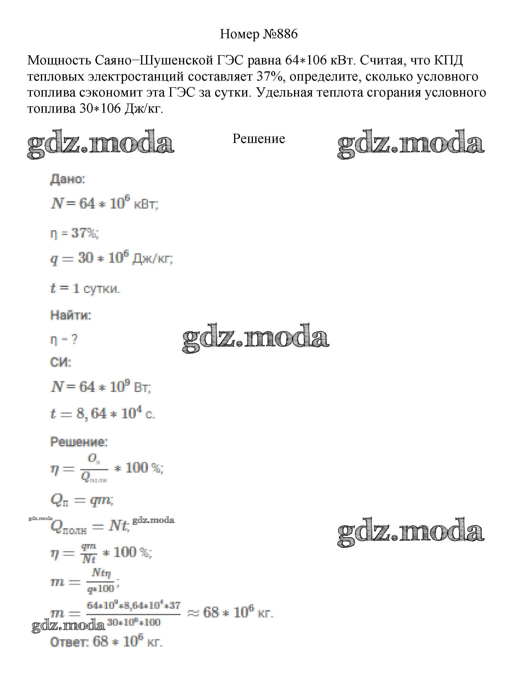 ОТВЕТ на задание № 886 Сборник вопросов и задач по Физике 7-9 класс Марон Вертикаль