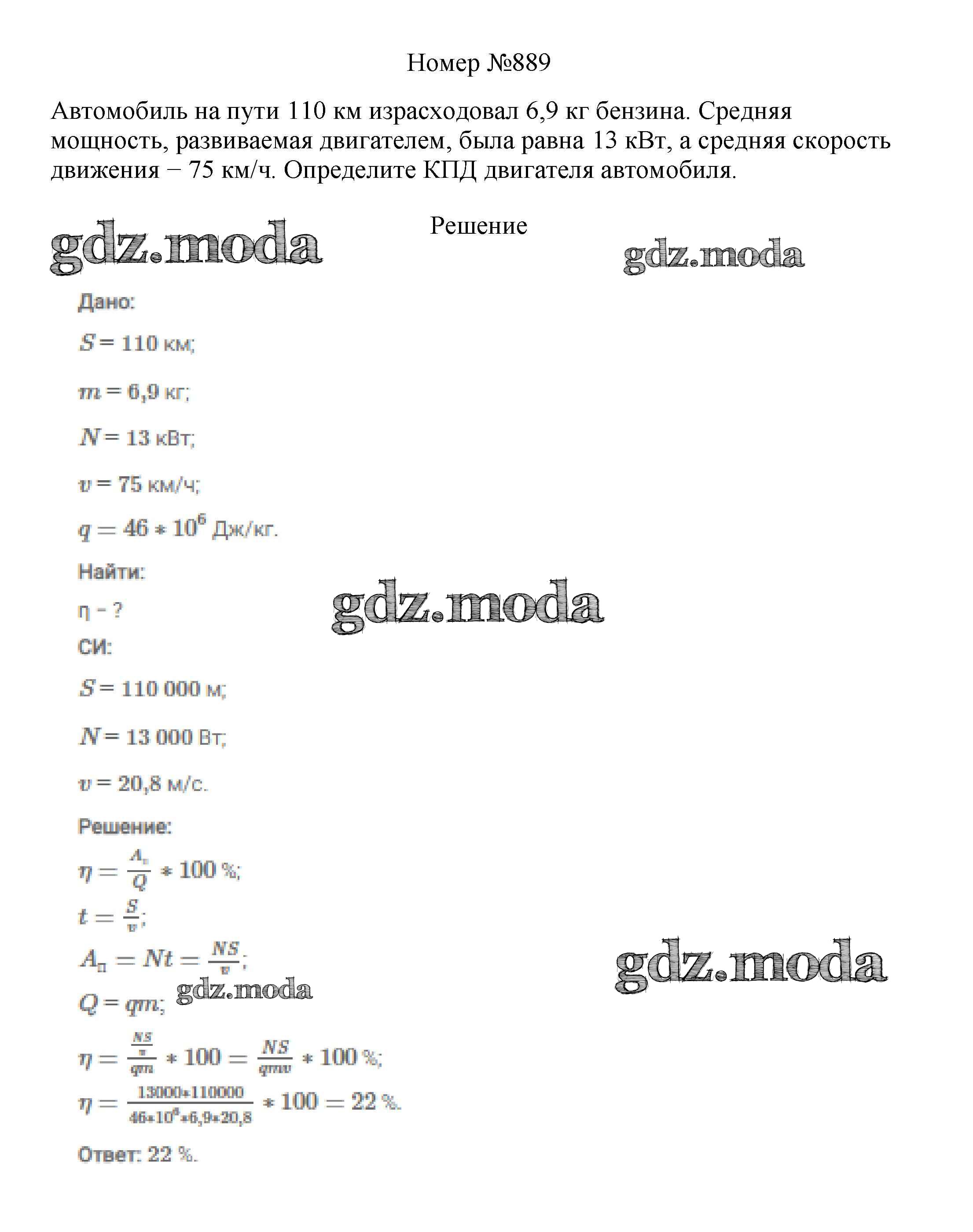 ОТВЕТ на задание № 889 Сборник вопросов и задач по Физике 7-9 класс Марон Вертикаль