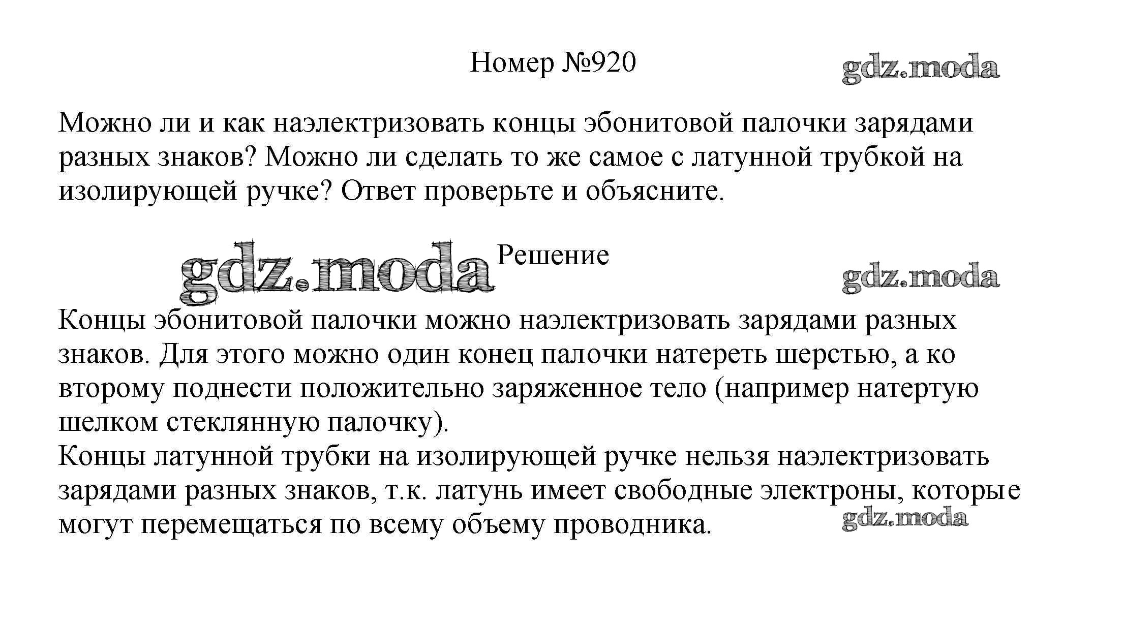 ГДЗ решение к заданию № 920 Физика 7-9 классы сборник вопросов и задач Марон А.Е. Дрофа 2013 ФГОС бесплатно на гдз.мода!