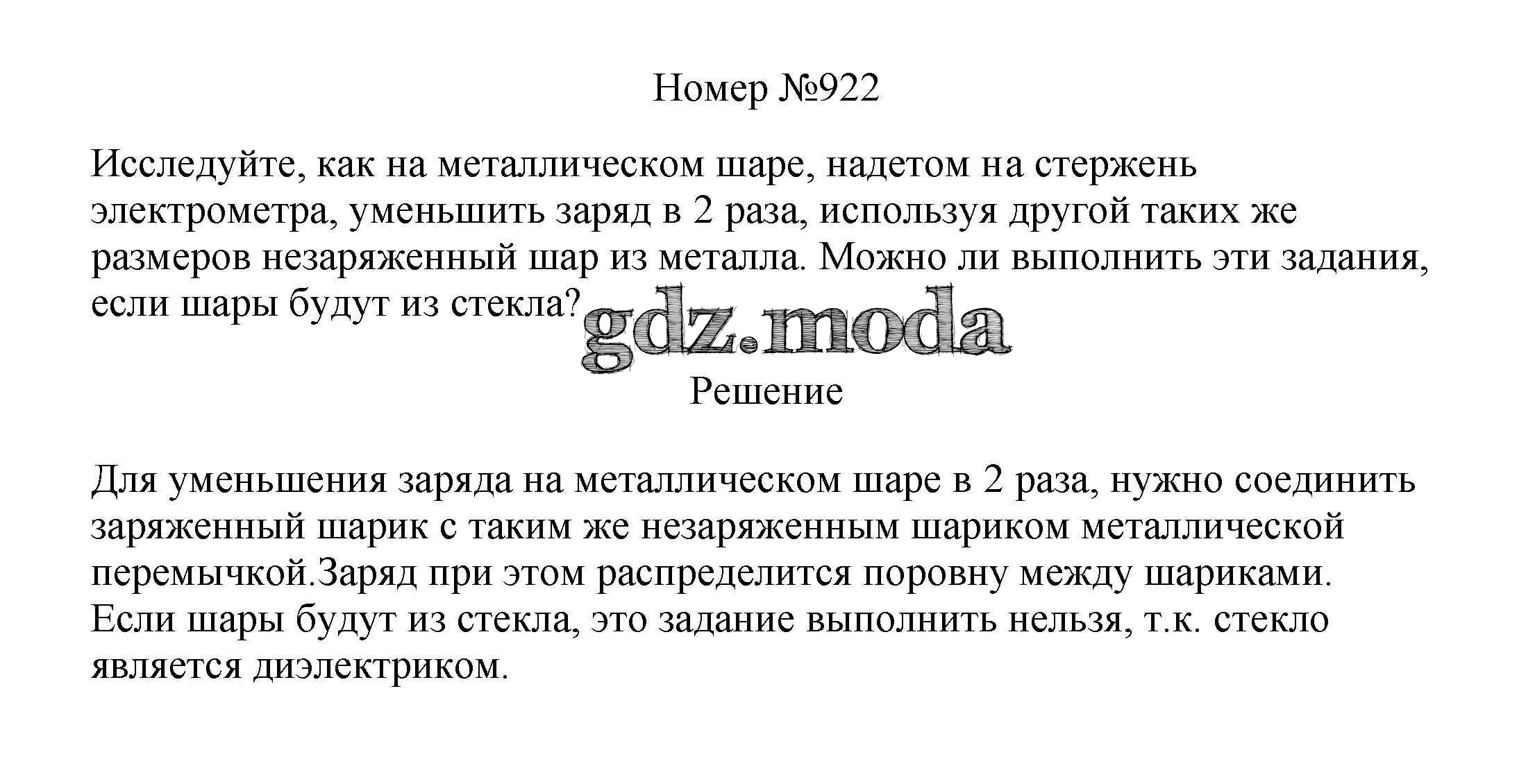 ГДЗ решение к заданию № 922 Физика 7-9 классы сборник вопросов и задач Марон А.Е. Дрофа 2013 ФГОС бесплатно на гдз.мода!