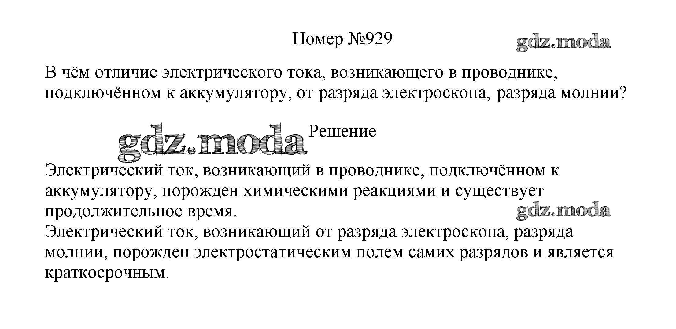 ГДЗ решение к заданию № 929 Физика 7-9 классы сборник вопросов и задач Марон А.Е. Дрофа 2013 ФГОС бесплатно на гдз.мода!