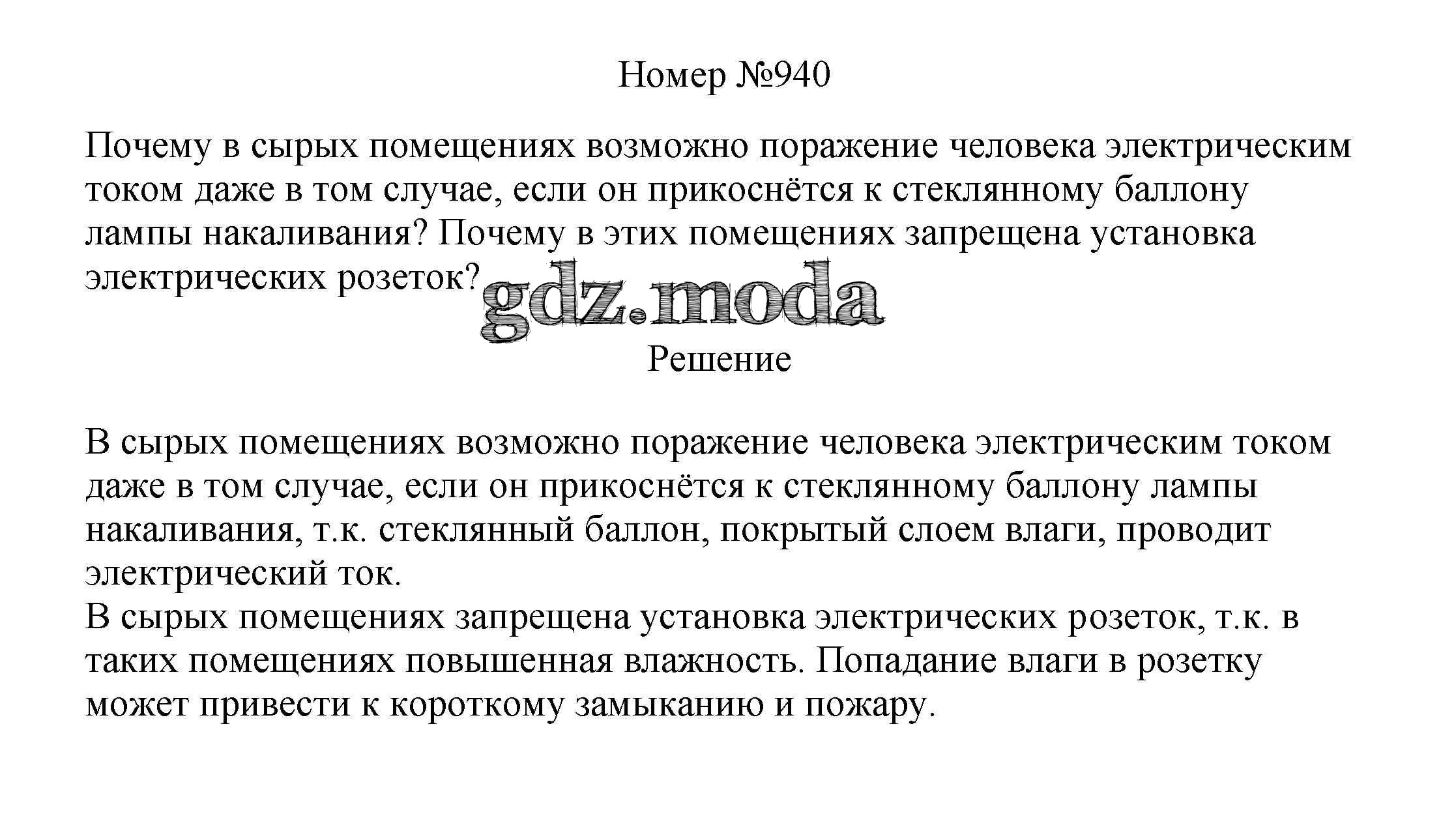 ГДЗ решение к заданию № 940 Физика 7-9 классы сборник вопросов и задач Марон А.Е. Дрофа 2013 ФГОС бесплатно на гдз.мода!