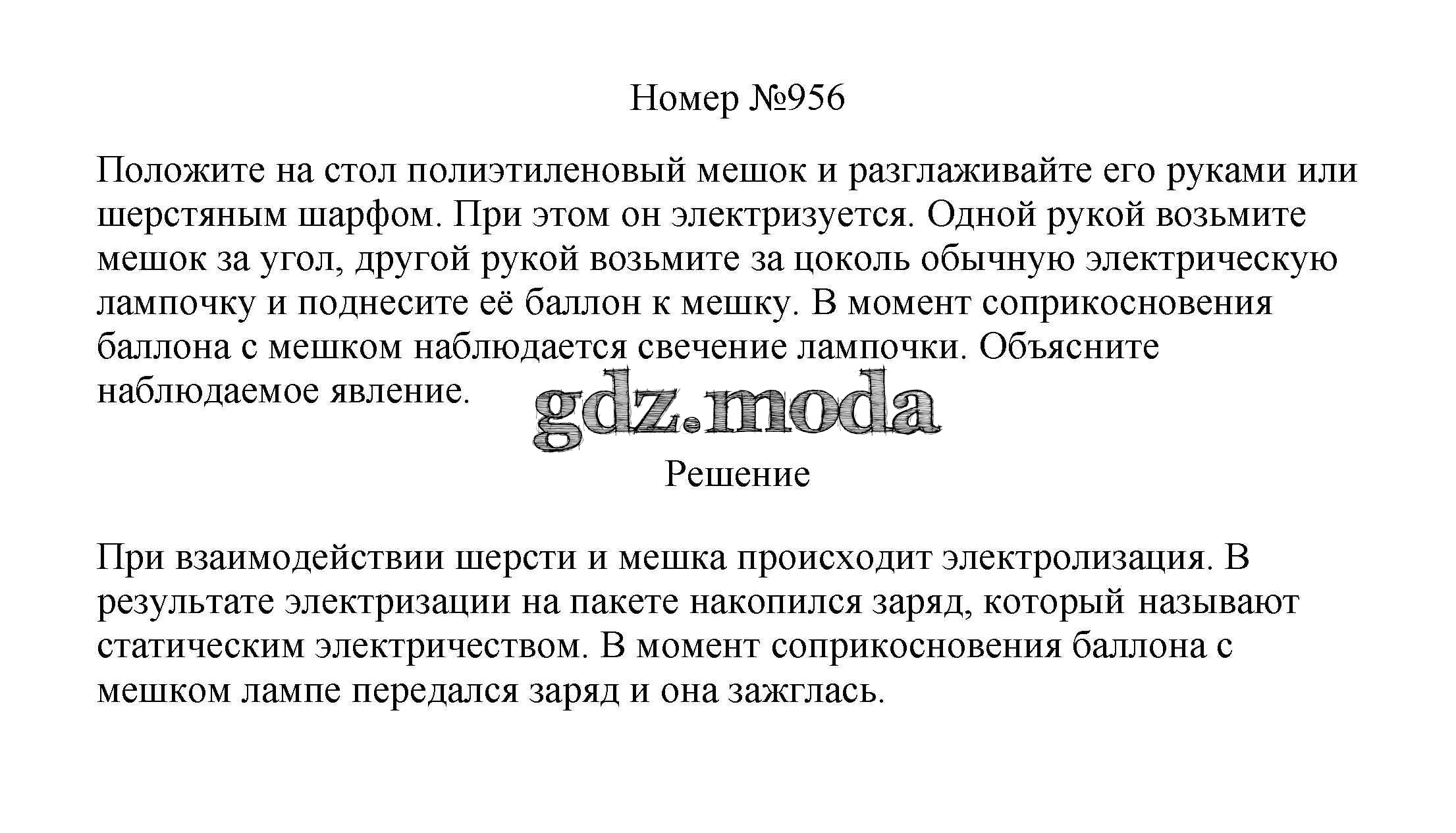 ГДЗ решение к заданию № 956 Физика 7-9 классы сборник вопросов и задач Марон А.Е. Дрофа 2013 ФГОС бесплатно на гдз.мода!