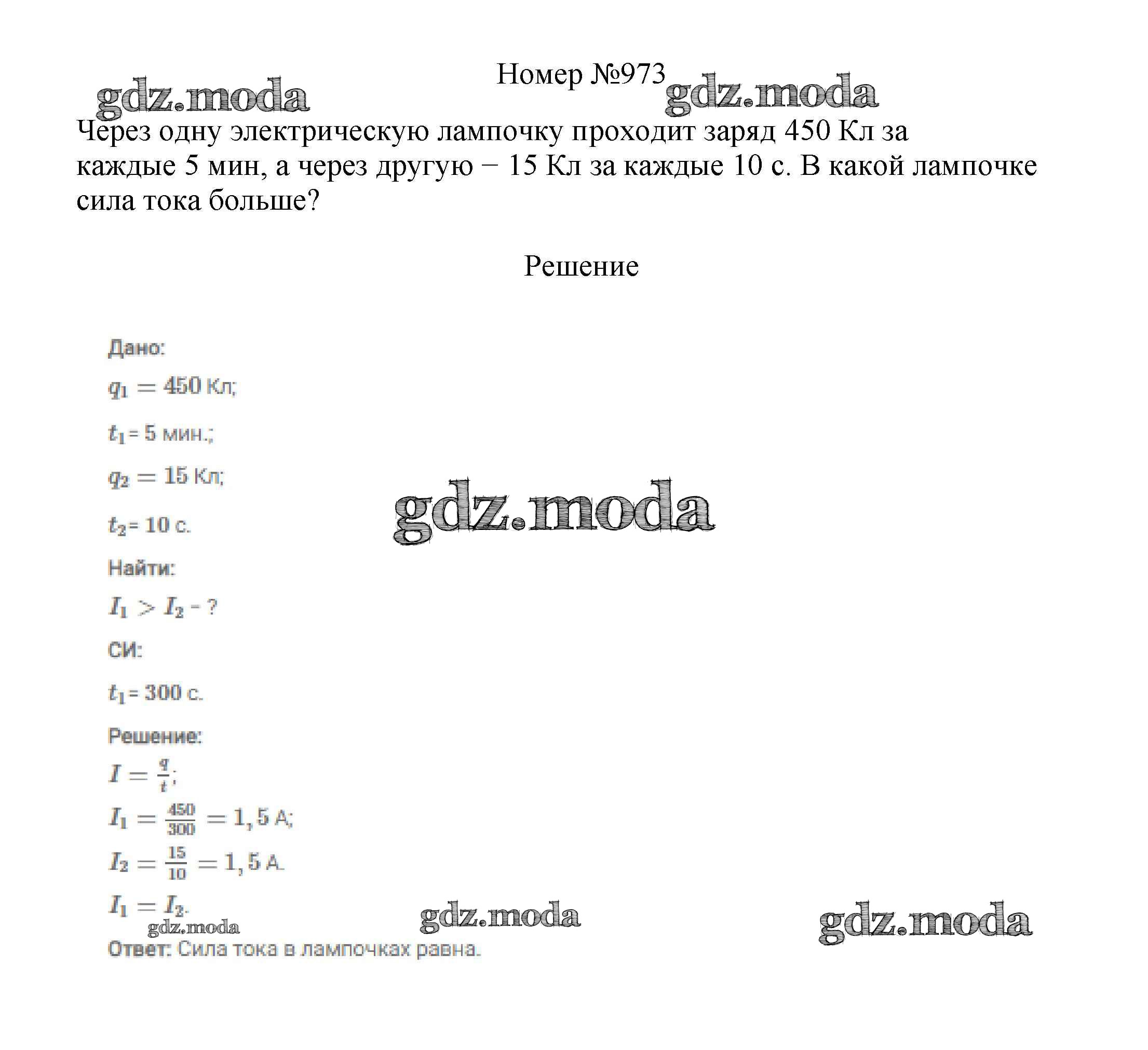 ГДЗ решение к заданию № 973 Физика 7-9 классы сборник вопросов и задач Марон А.Е. Дрофа 2013 ФГОС бесплатно на гдз.мода!