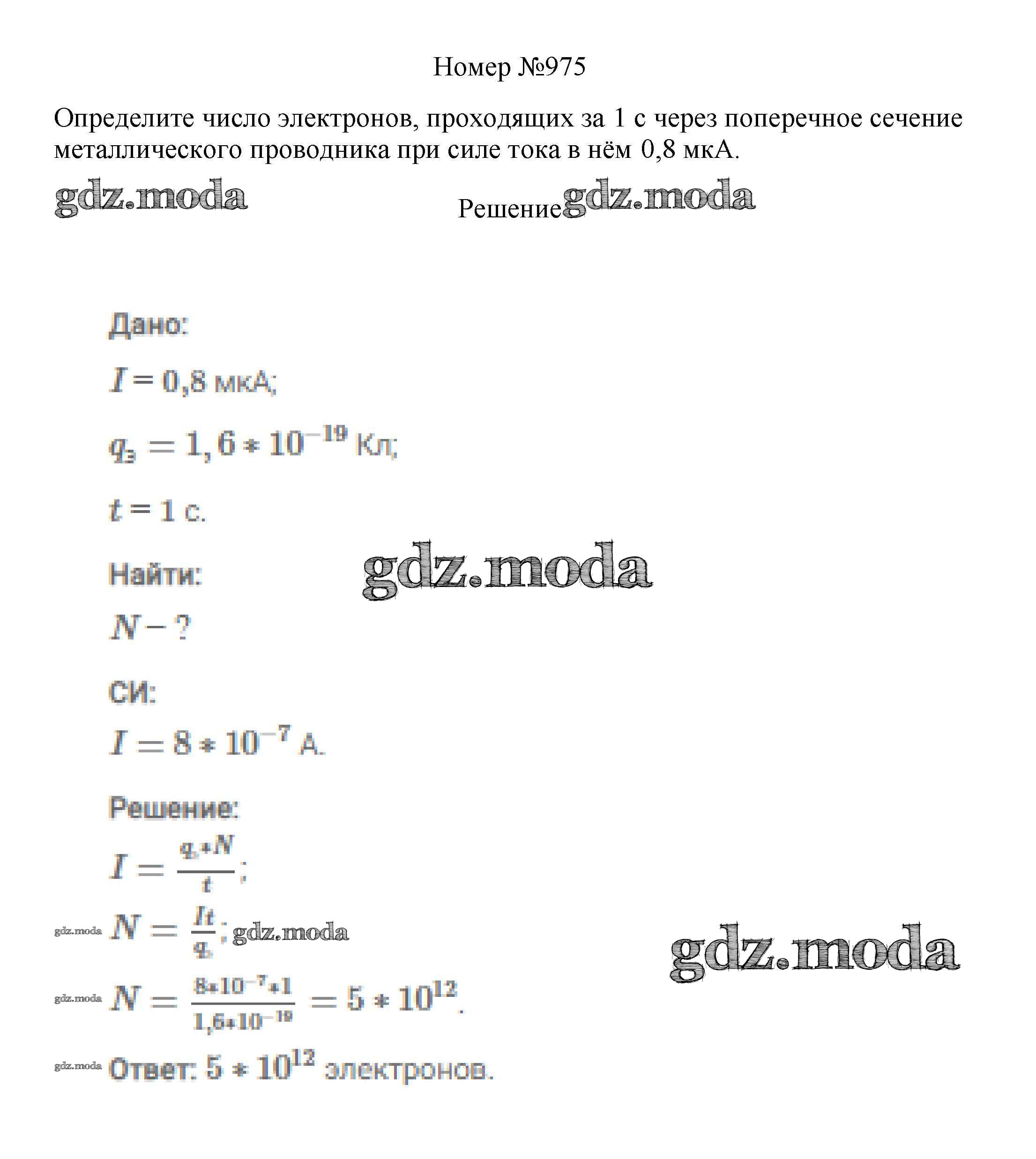 ГДЗ решение к заданию № 975 Физика 7-9 классы сборник вопросов и задач Марон А.Е. Дрофа 2013 ФГОС бесплатно на гдз.мода!