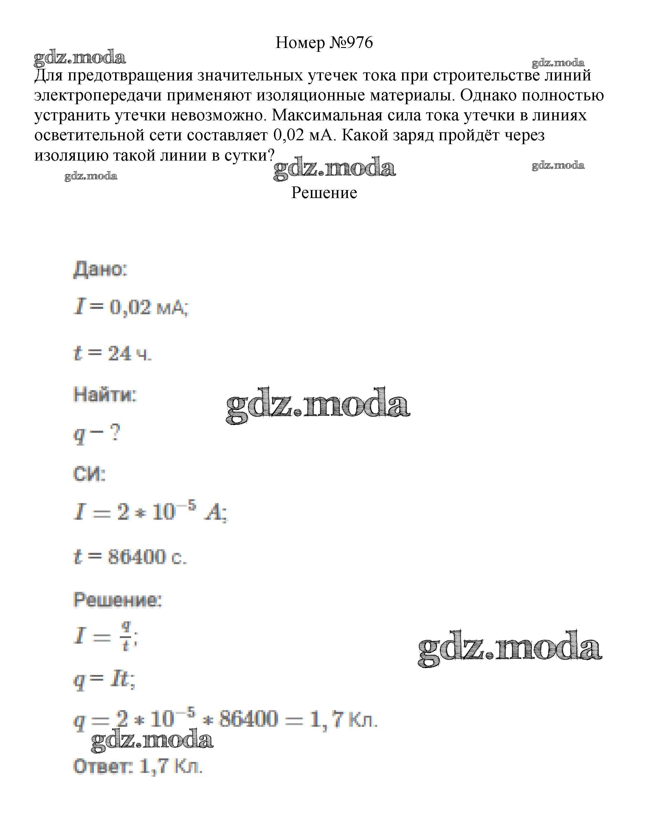 ГДЗ решение к заданию № 976 Физика 7-9 классы сборник вопросов и задач Марон А.Е. Дрофа 2013 ФГОС бесплатно на гдз.мода!