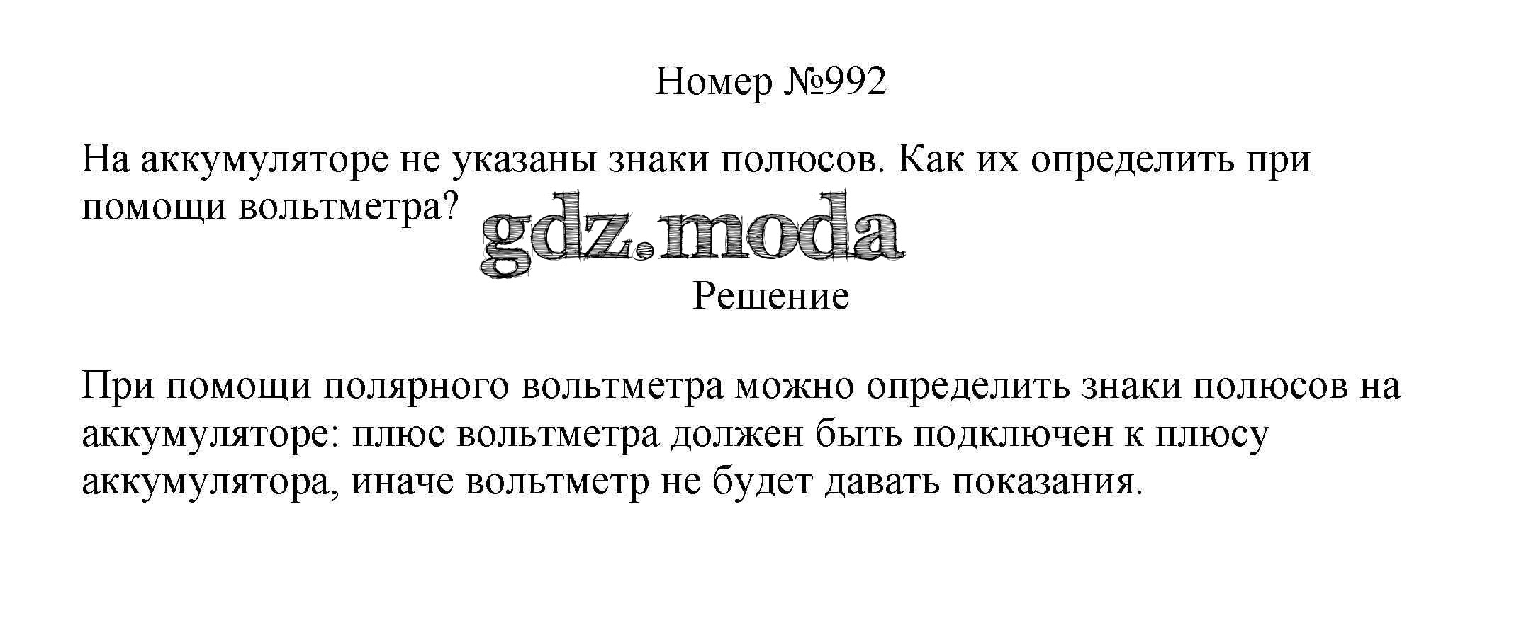 ГДЗ решение к заданию № 992 Физика 7-9 классы сборник вопросов и задач Марон А.Е. Дрофа 2013 ФГОС бесплатно на гдз.мода!