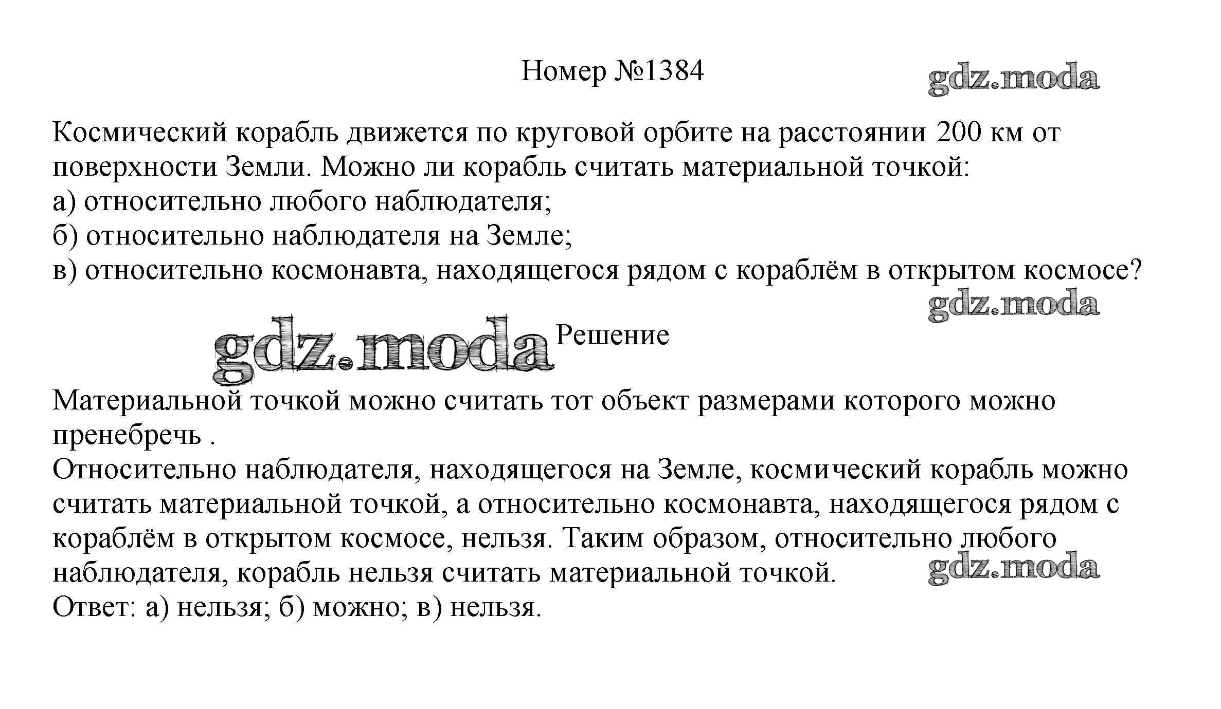 ГДЗ решение к заданию № 1384 Физика 7-9 классы сборник вопросов и задач Марон А.Е. Дрофа 2013 ФГОС бесплатно на гдз.мода!