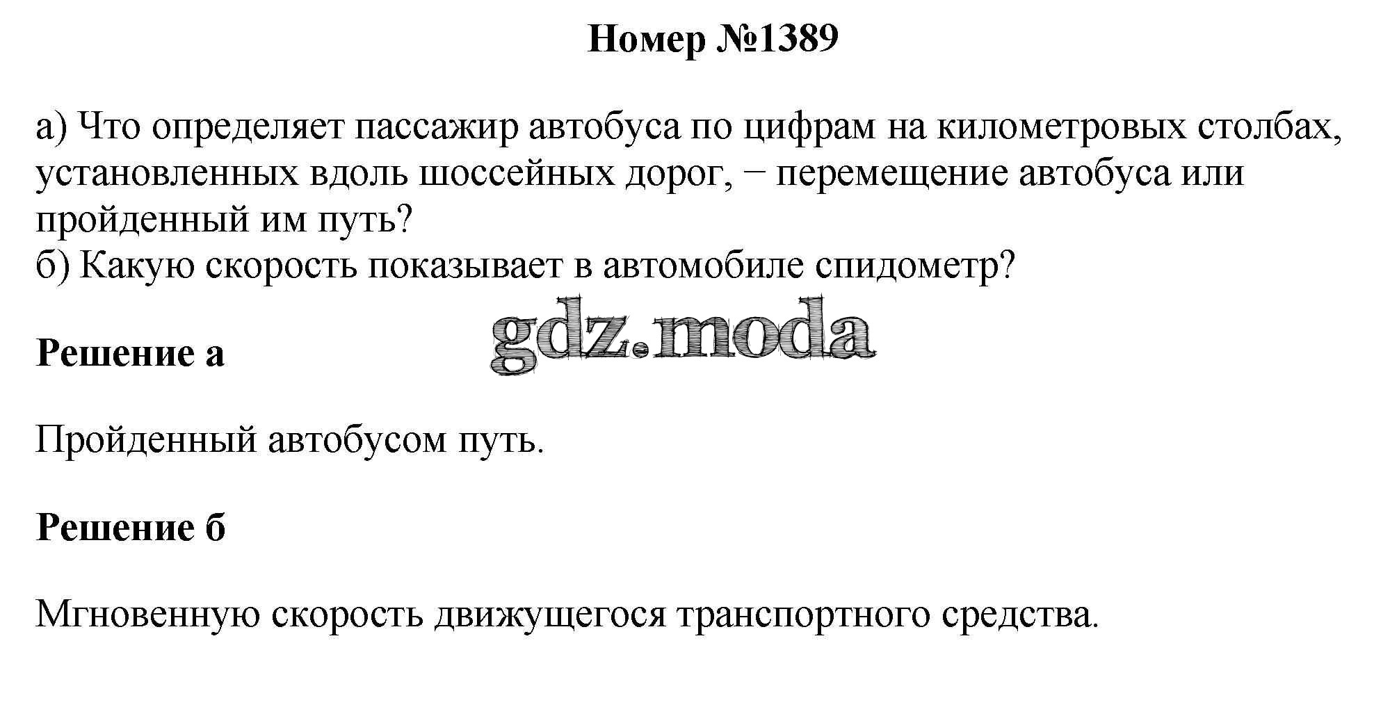 ОТВЕТ на задание № 1389 Сборник вопросов и задач по Физике 7-9 класс Марон Вертикаль