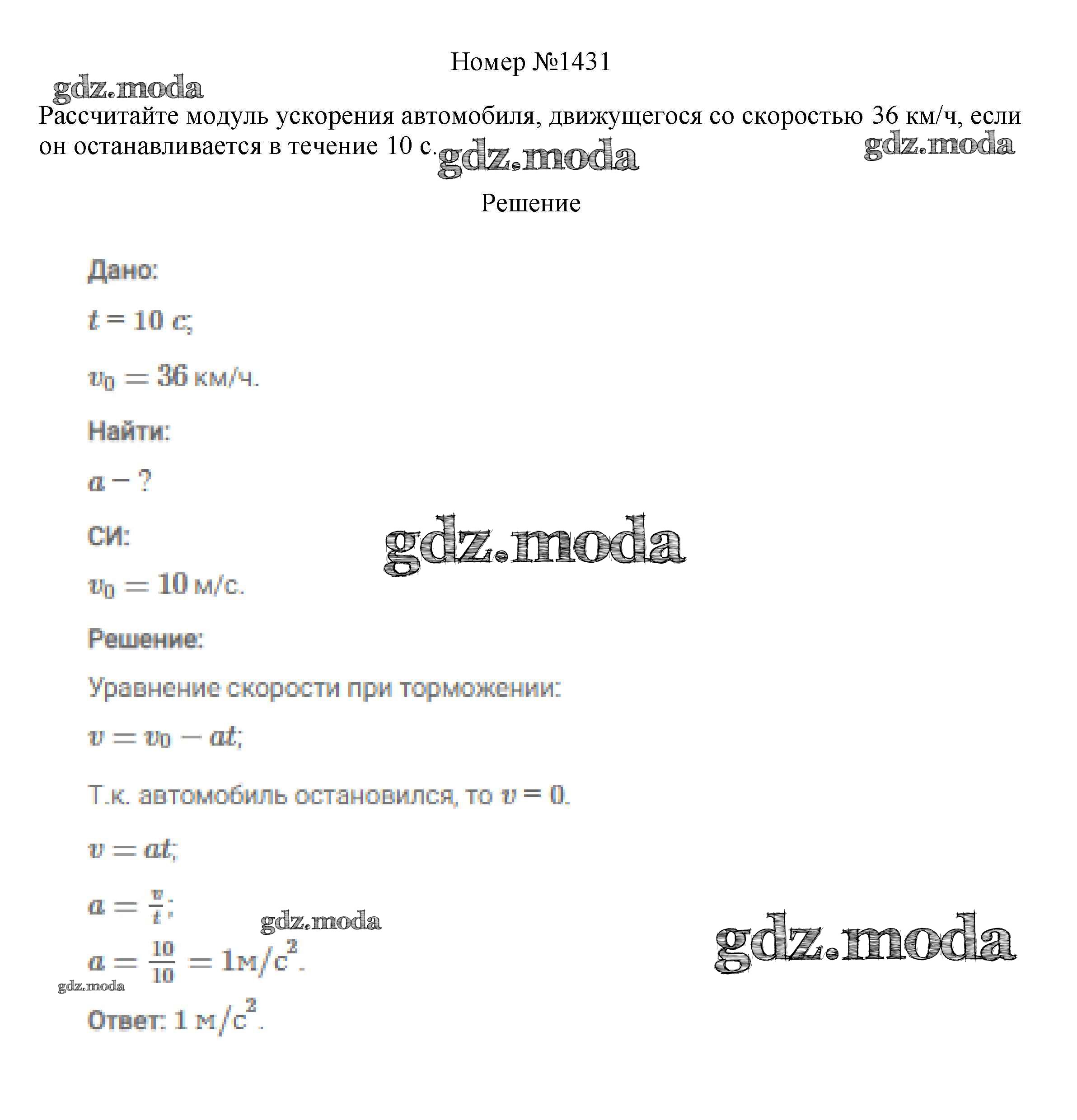 ОТВЕТ на задание № 1431 Сборник вопросов и задач по Физике 7-9 класс Марон Вертикаль