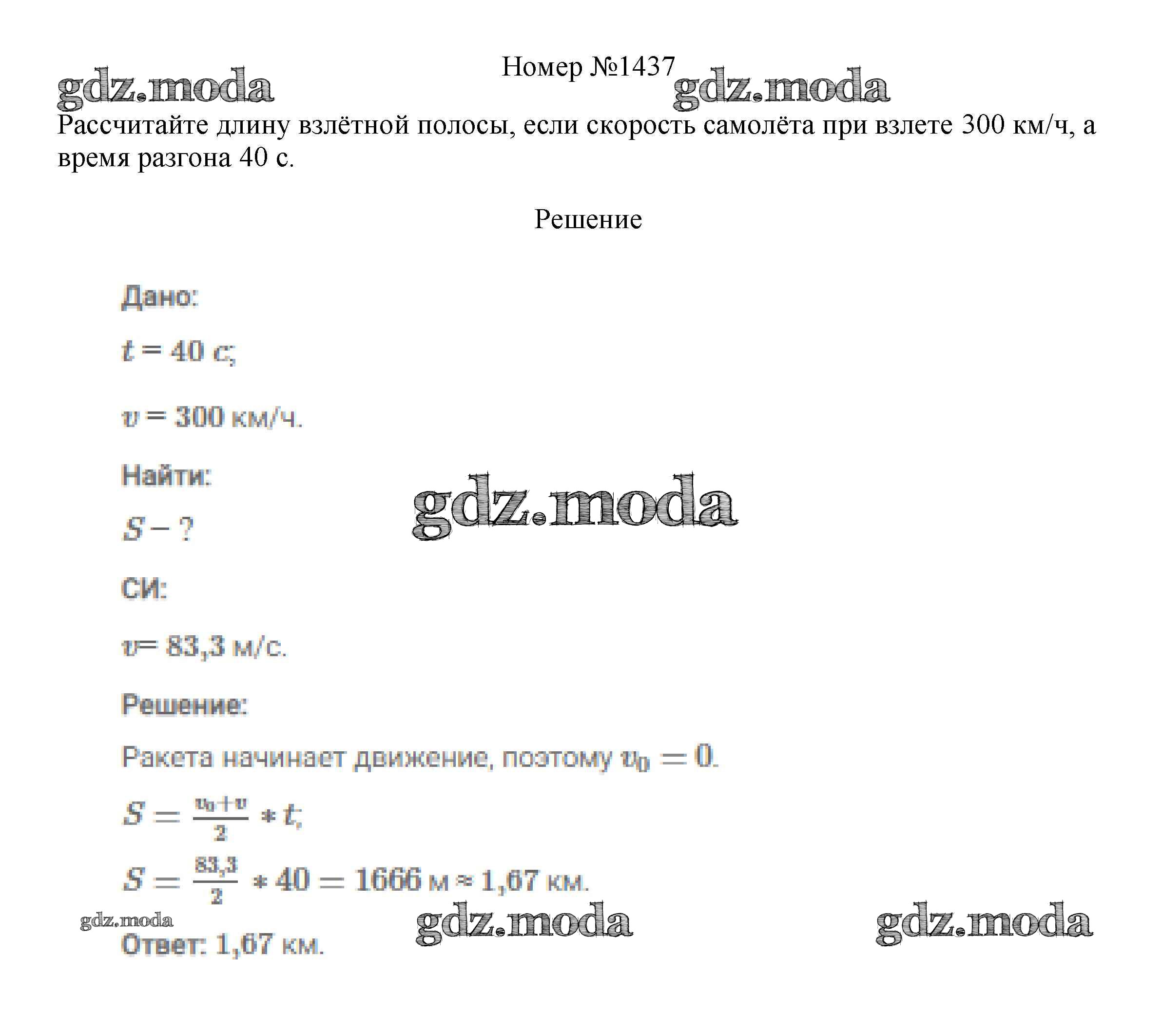 ОТВЕТ на задание № 1437 Сборник вопросов и задач по Физике 7-9 класс Марон Вертикаль
