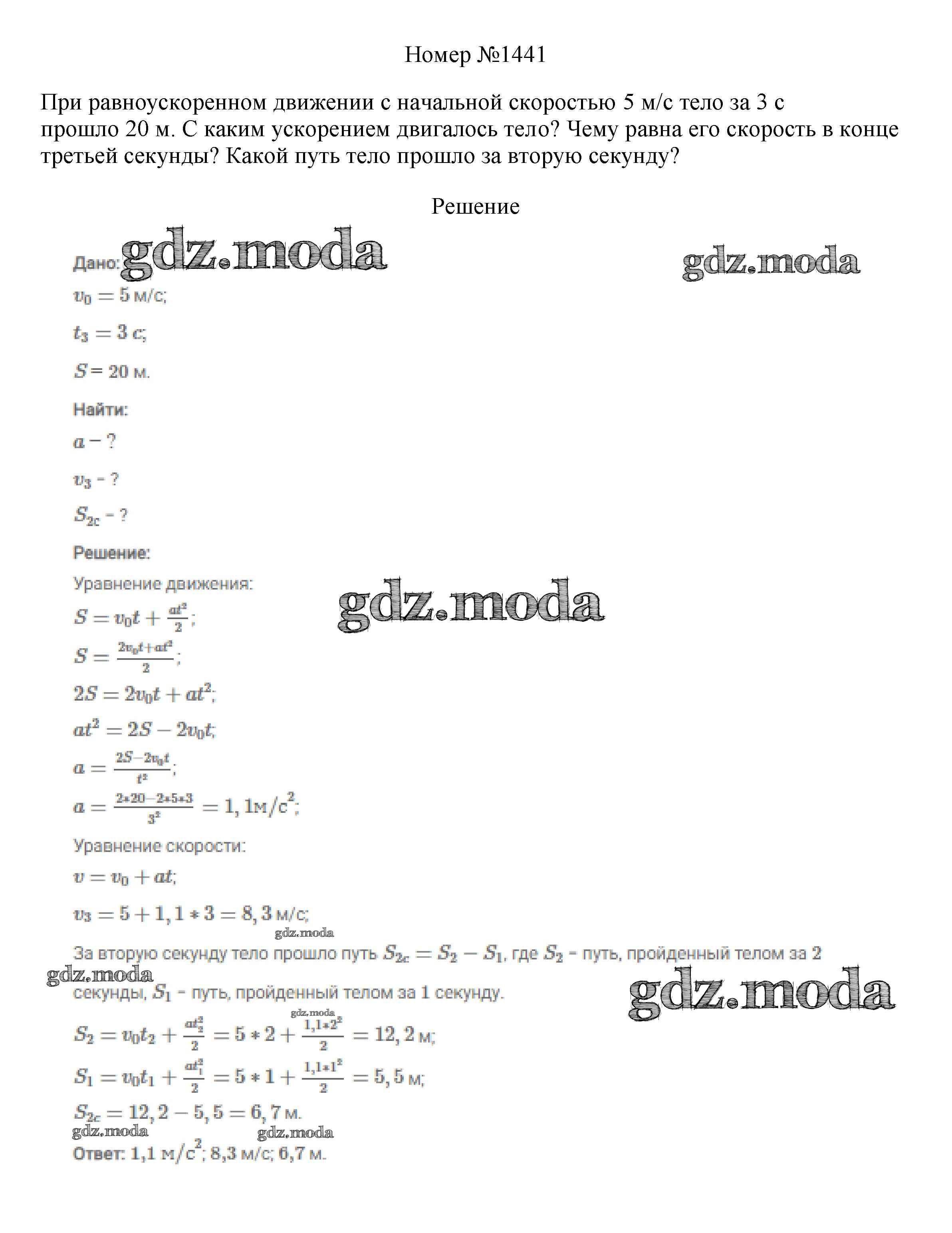 ОТВЕТ на задание № 1441 Сборник вопросов и задач по Физике 7-9 класс Марон Вертикаль