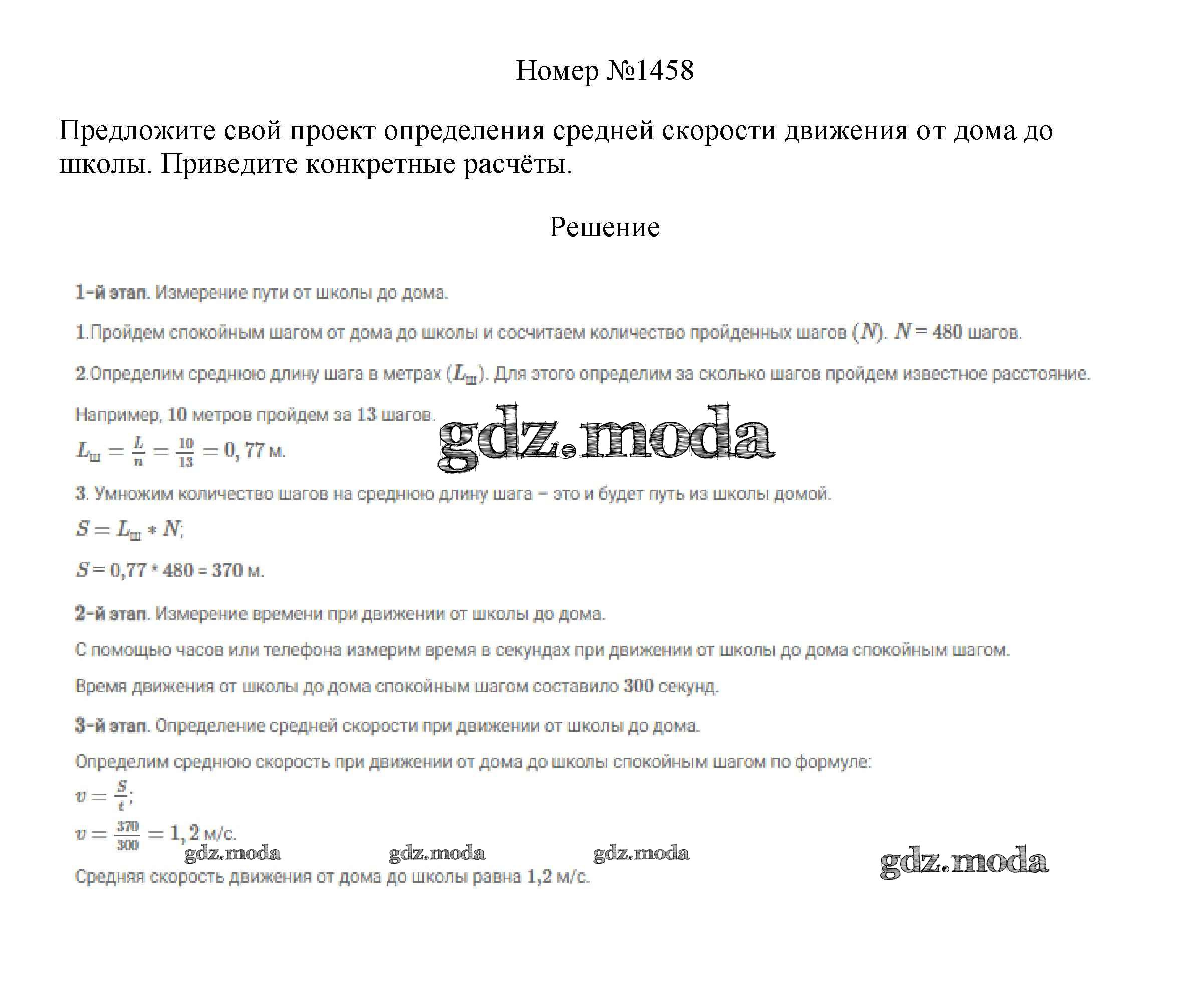 ОТВЕТ на задание № 1458 Сборник вопросов и задач по Физике 7-9 класс Марон Вертикаль