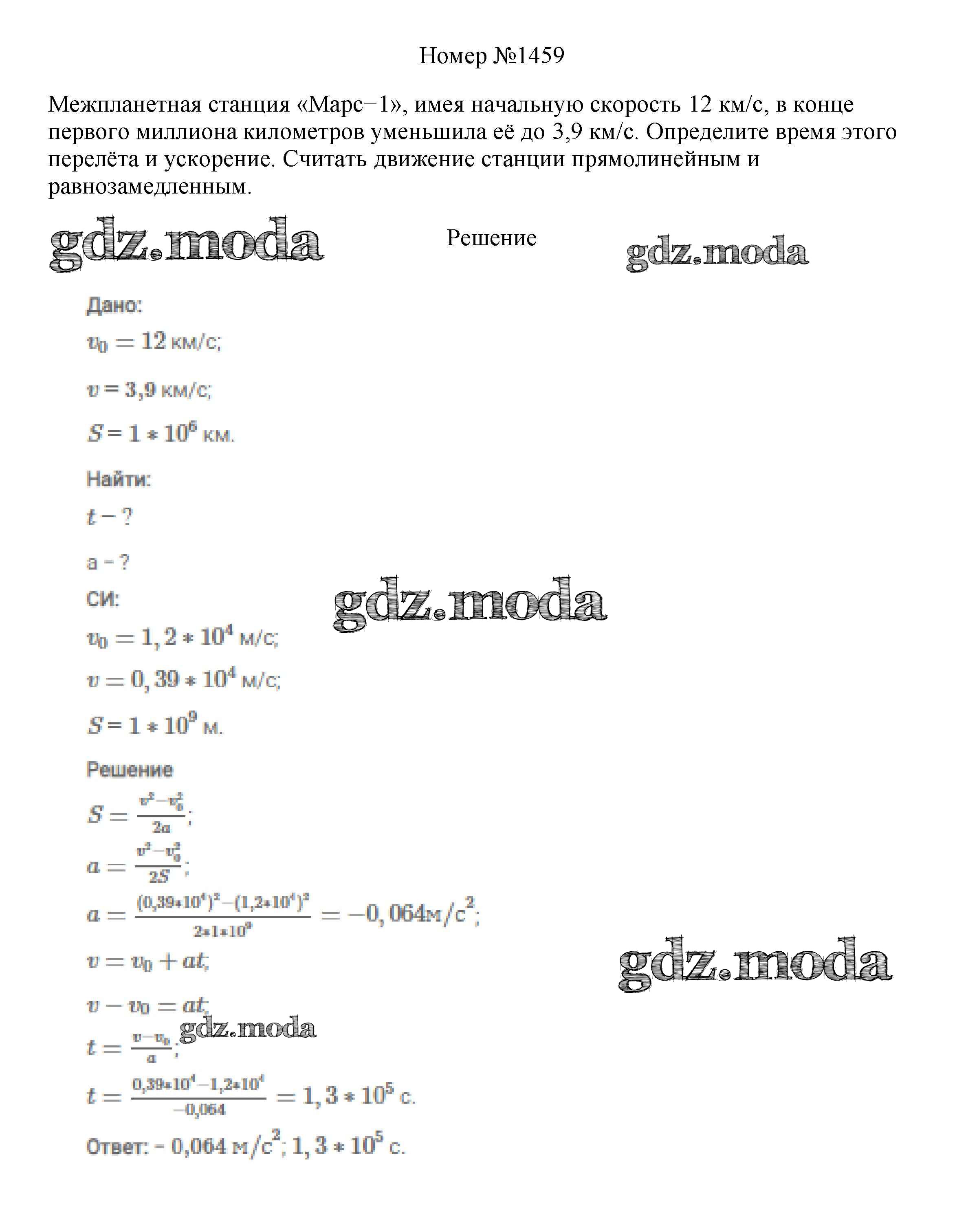 ОТВЕТ на задание № 1459 Сборник вопросов и задач по Физике 7-9 класс Марон Вертикаль