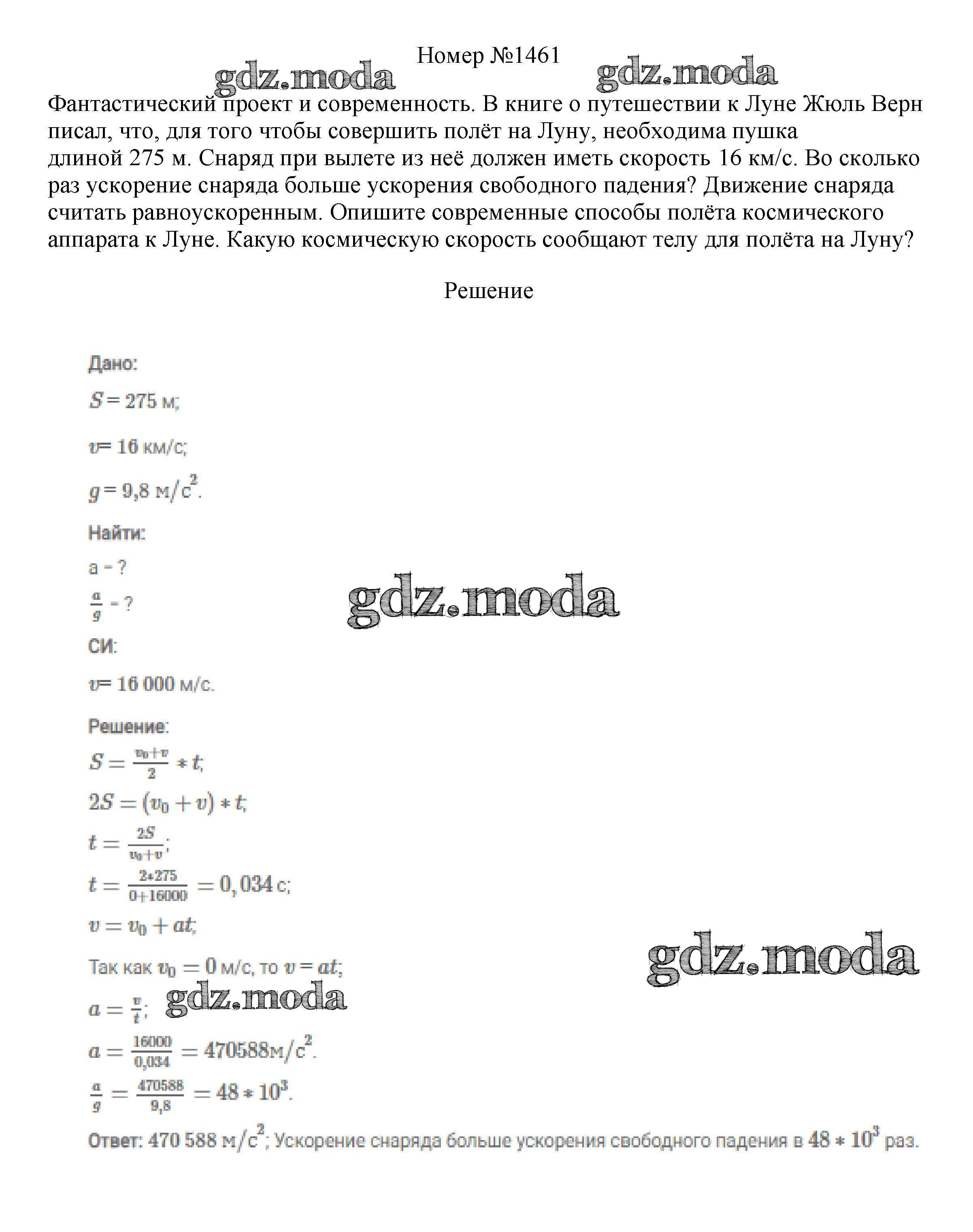 ОТВЕТ на задание № 1461 Сборник вопросов и задач по Физике 7-9 класс Марон Вертикаль