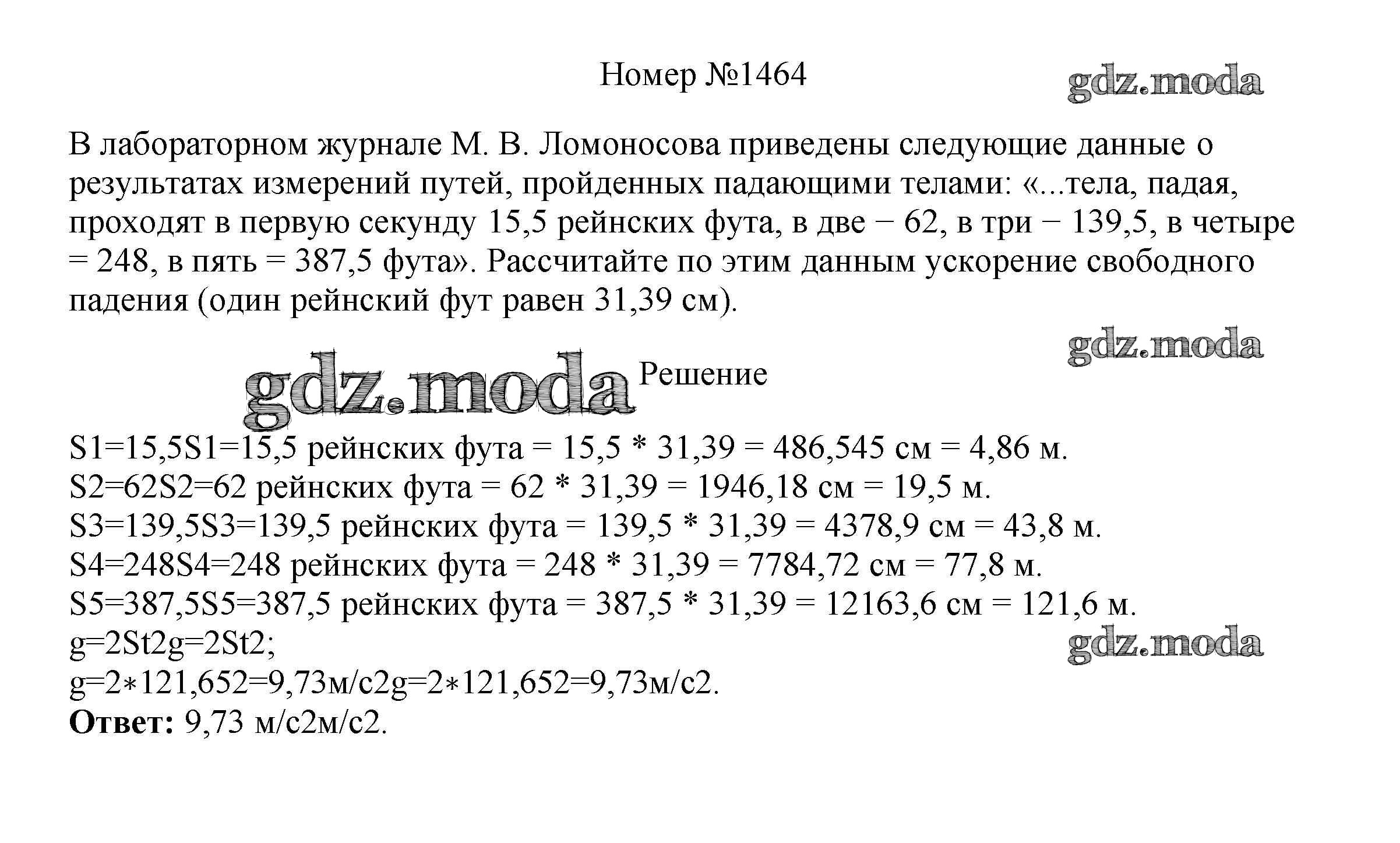 ОТВЕТ на задание № 1464 Сборник вопросов и задач по Физике 7-9 класс Марон Вертикаль