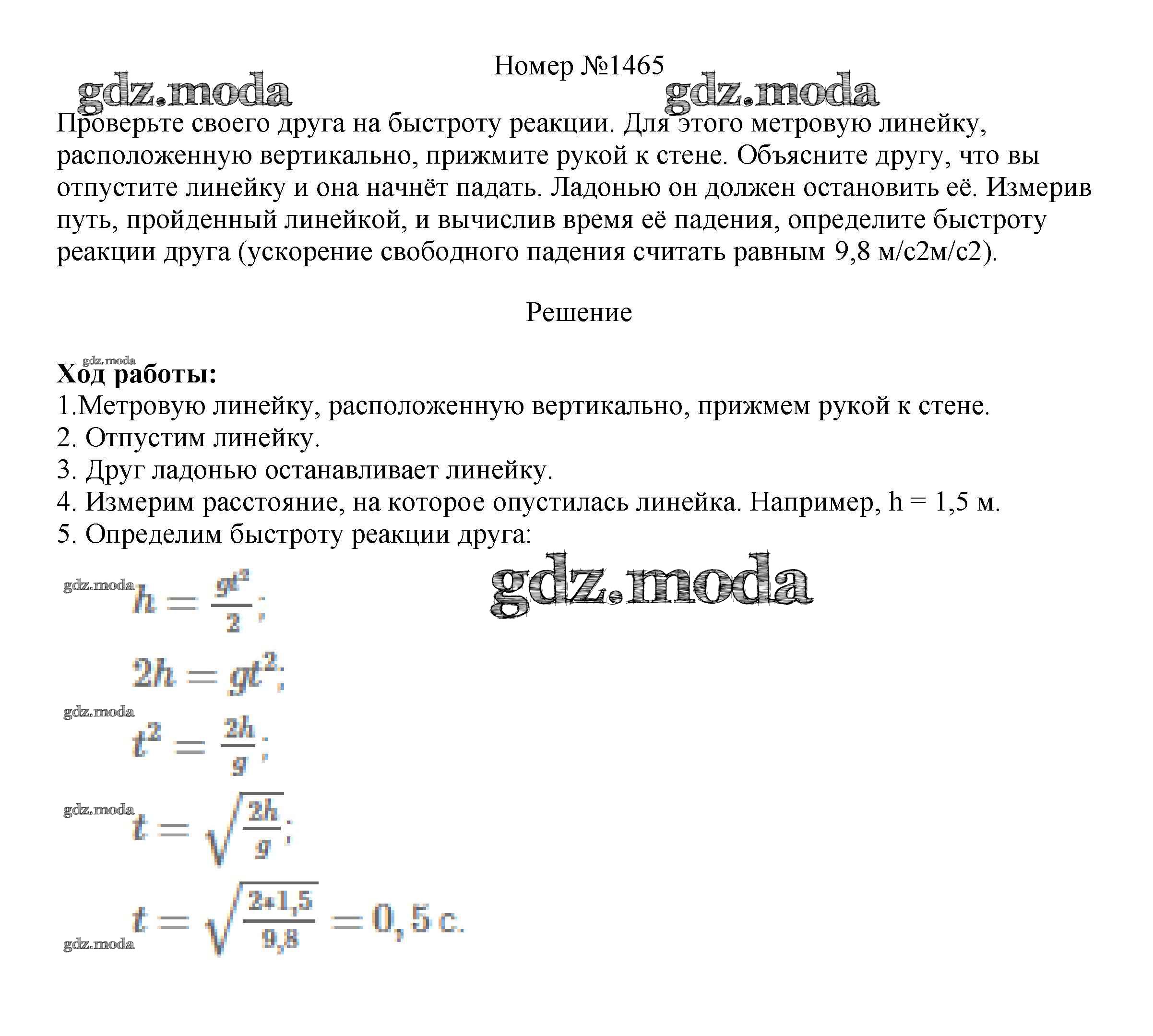 ОТВЕТ на задание № 1465 Сборник вопросов и задач по Физике 7-9 класс Марон Вертикаль