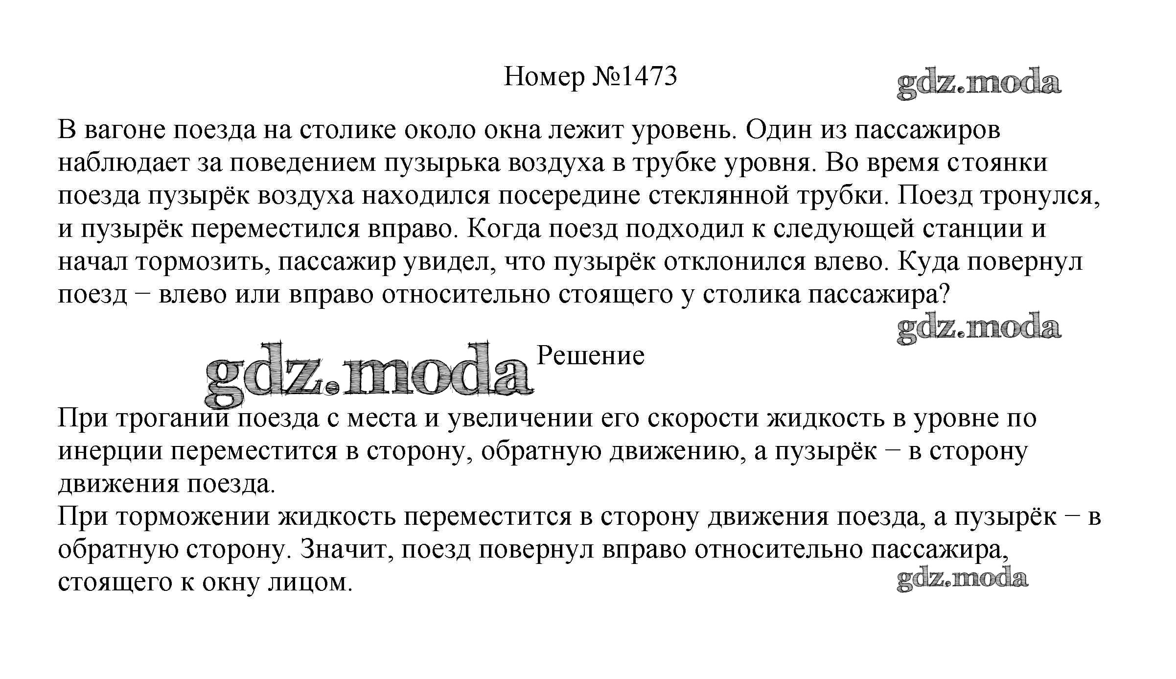 ОТВЕТ на задание № 1473 Сборник вопросов и задач по Физике 7-9 класс Марон Вертикаль
