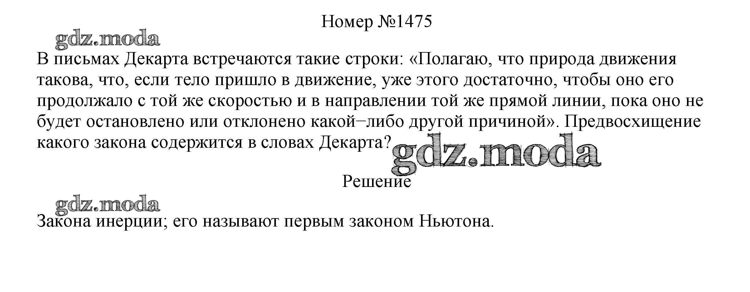ОТВЕТ на задание № 1475 Сборник вопросов и задач по Физике 7-9 класс Марон Вертикаль