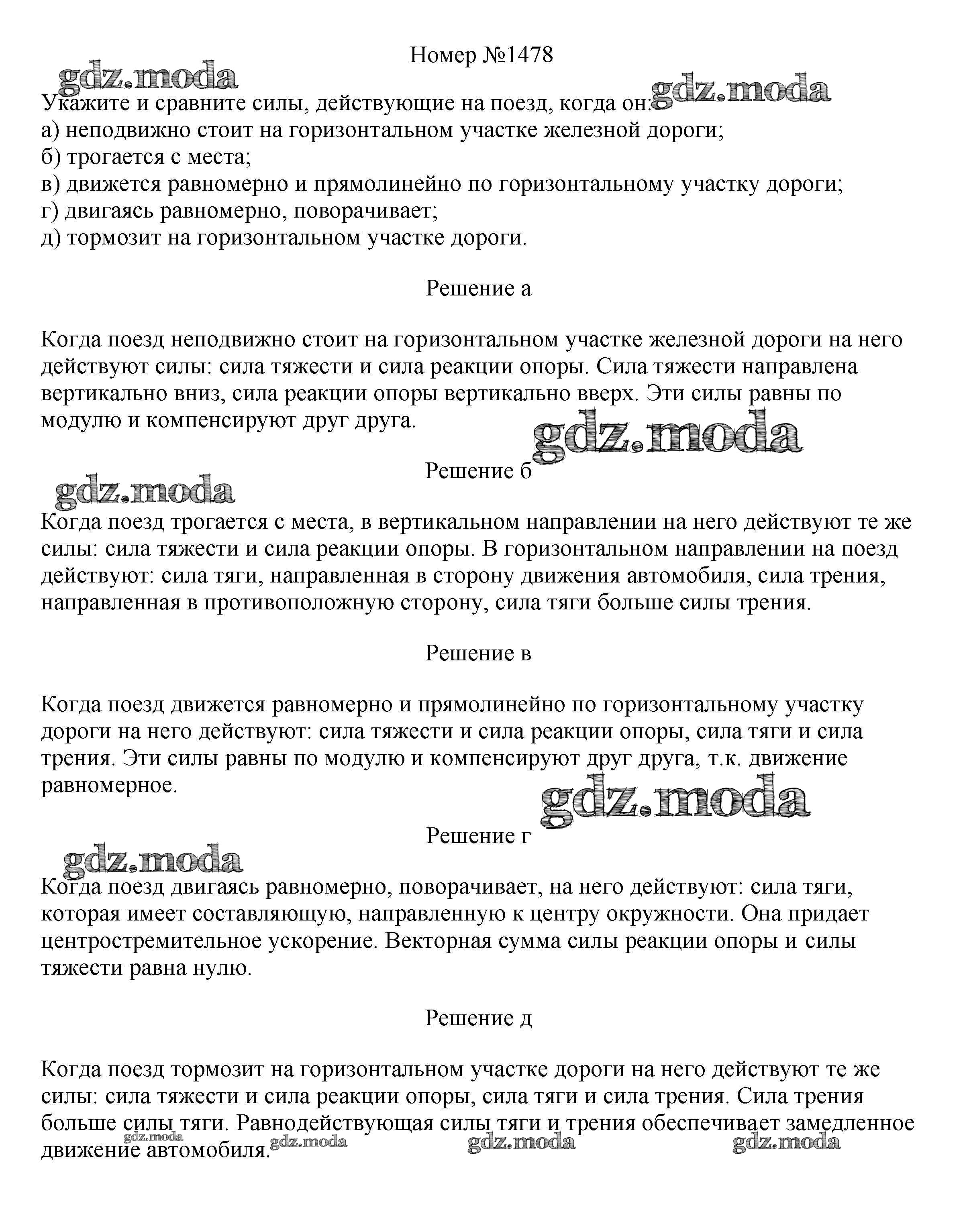ОТВЕТ на задание № 1478 Сборник вопросов и задач по Физике 7-9 класс Марон Вертикаль