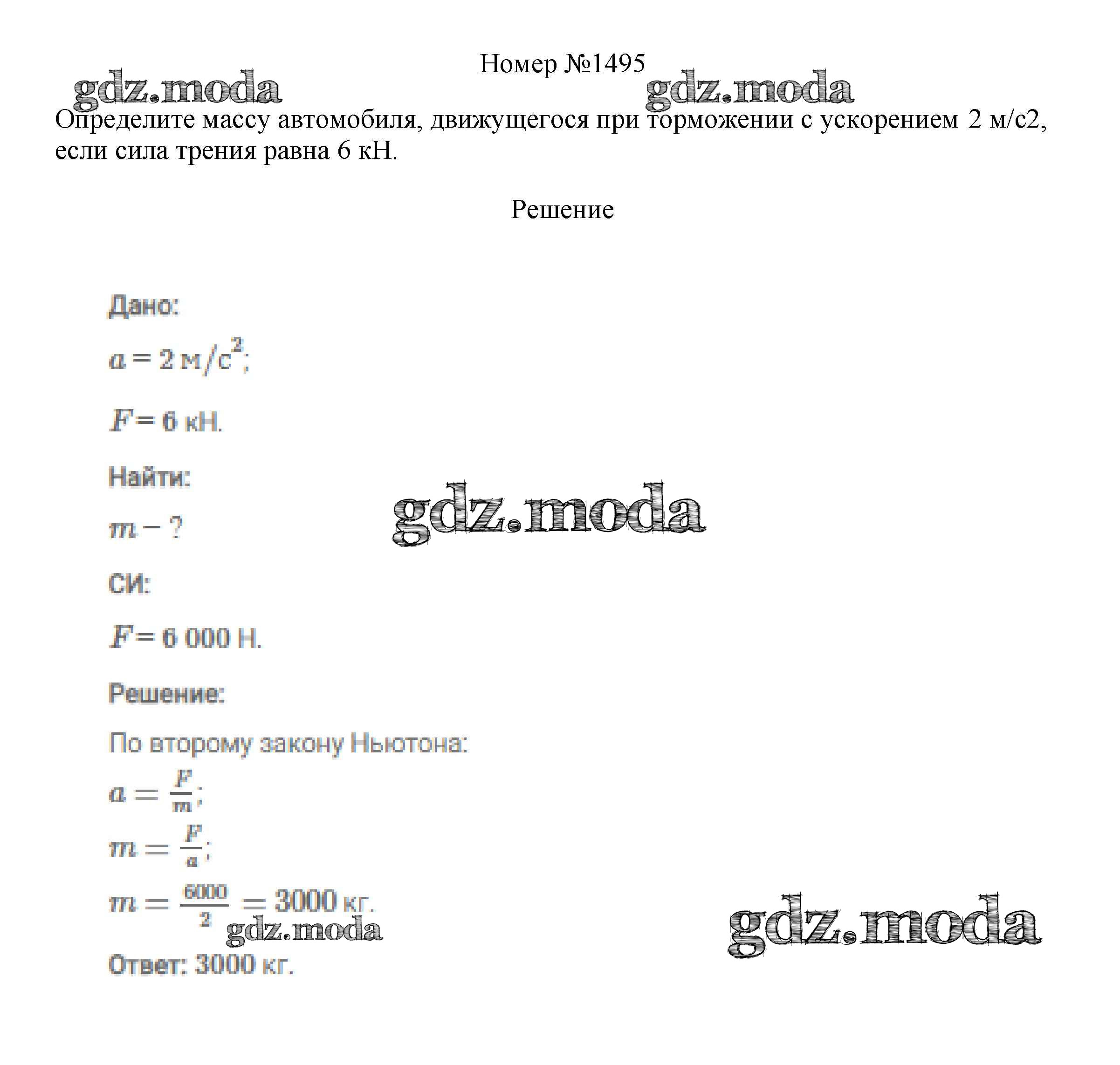 ОТВЕТ на задание № 1495 Сборник вопросов и задач по Физике 7-9 класс Марон Вертикаль