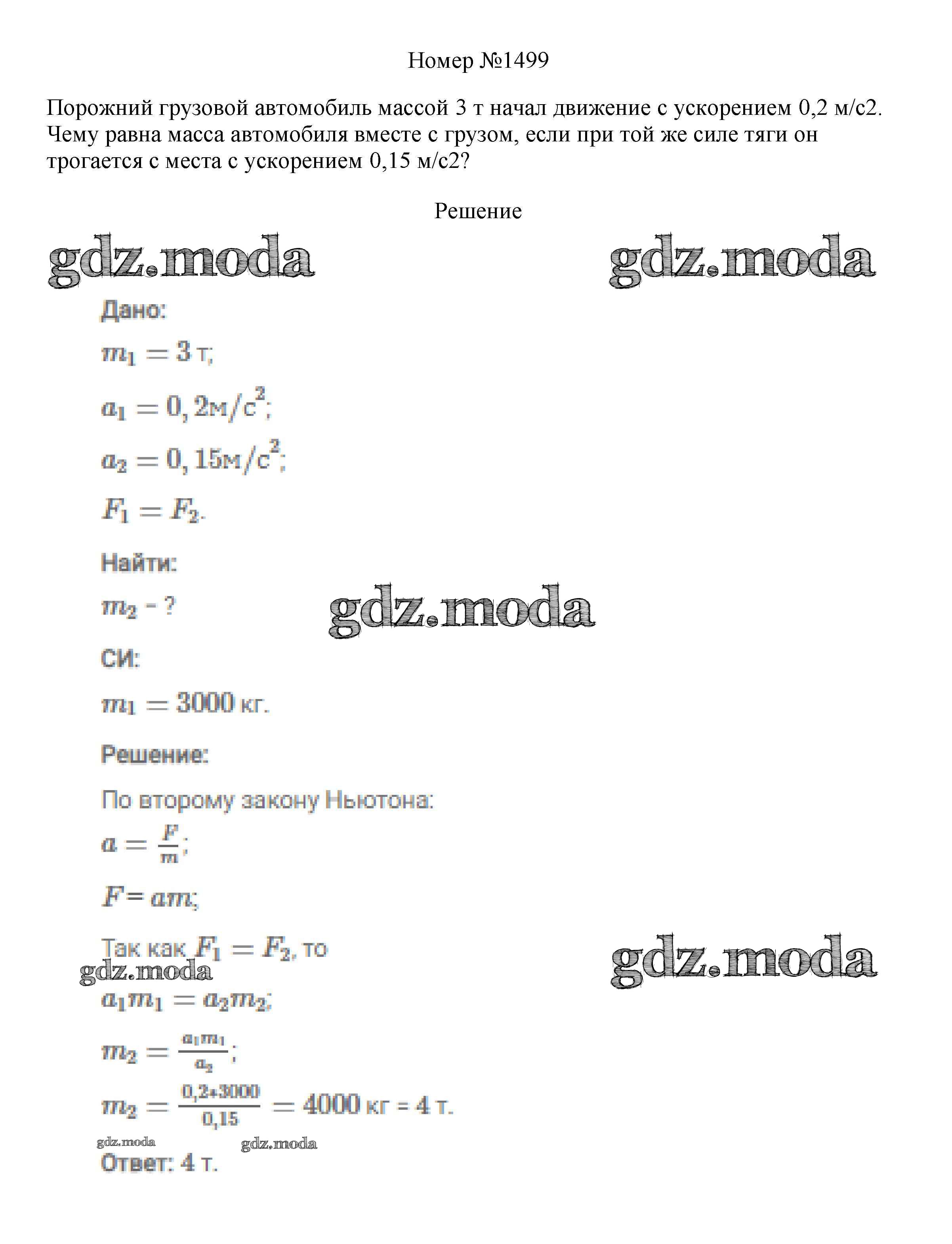 ОТВЕТ на задание № 1499 Сборник вопросов и задач по Физике 7-9 класс Марон Вертикаль