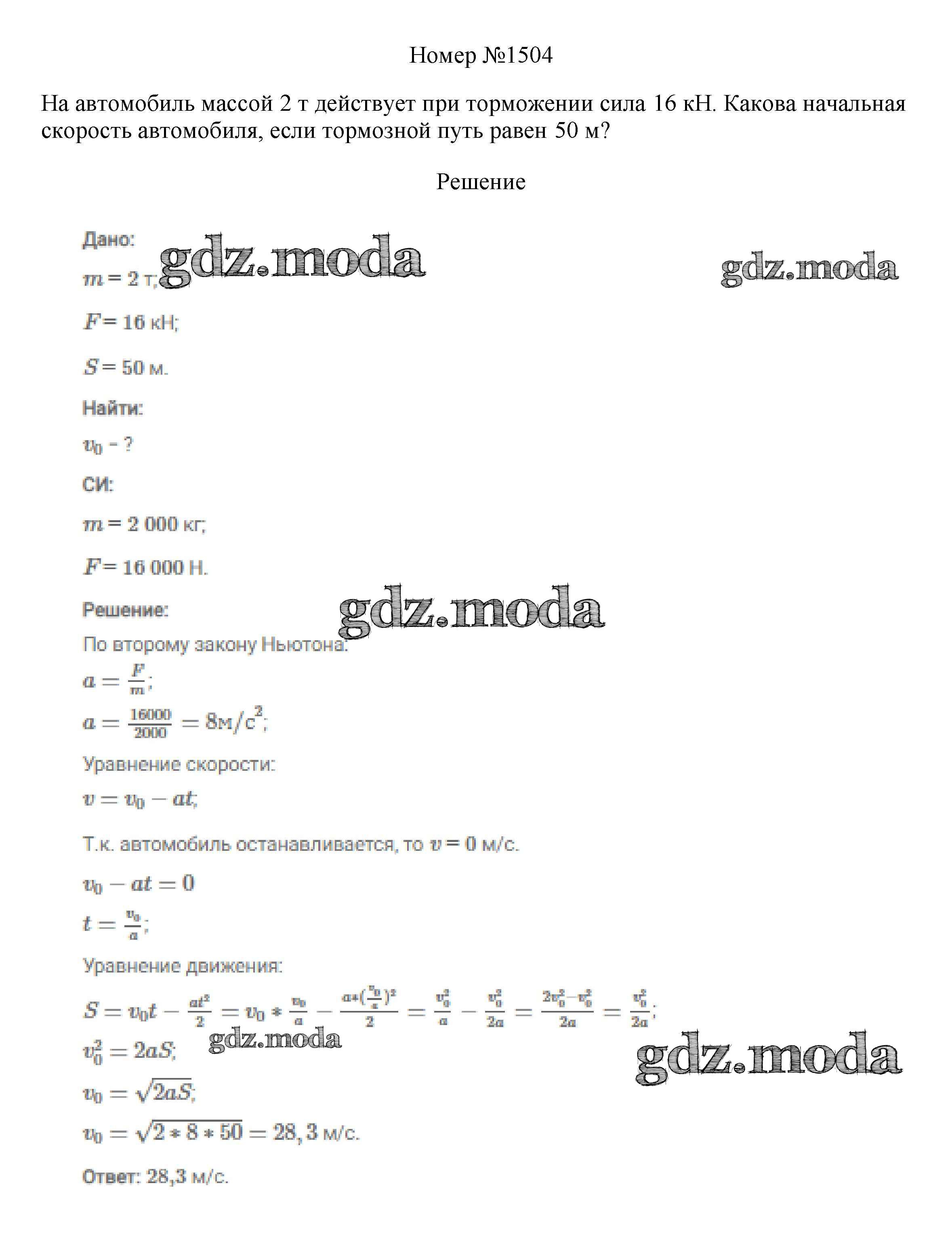 ОТВЕТ на задание № 1504 Сборник вопросов и задач по Физике 7-9 класс Марон Вертикаль