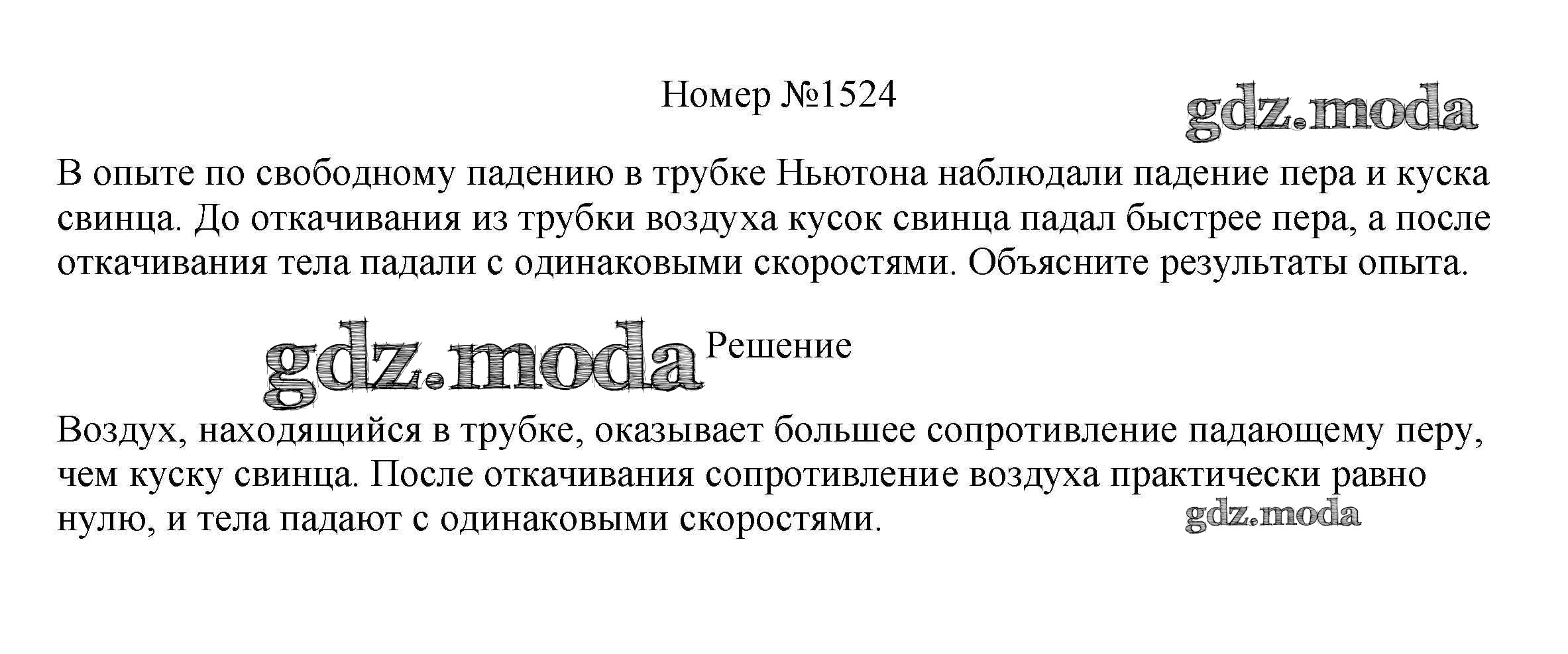 ОТВЕТ на задание № 1524 Сборник вопросов и задач по Физике 7-9 класс Марон Вертикаль