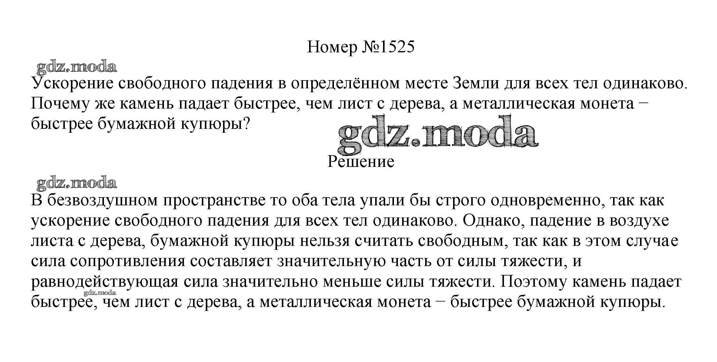 ОТВЕТ на задание № 1525 Сборник вопросов и задач по Физике 7-9 класс Марон Вертикаль