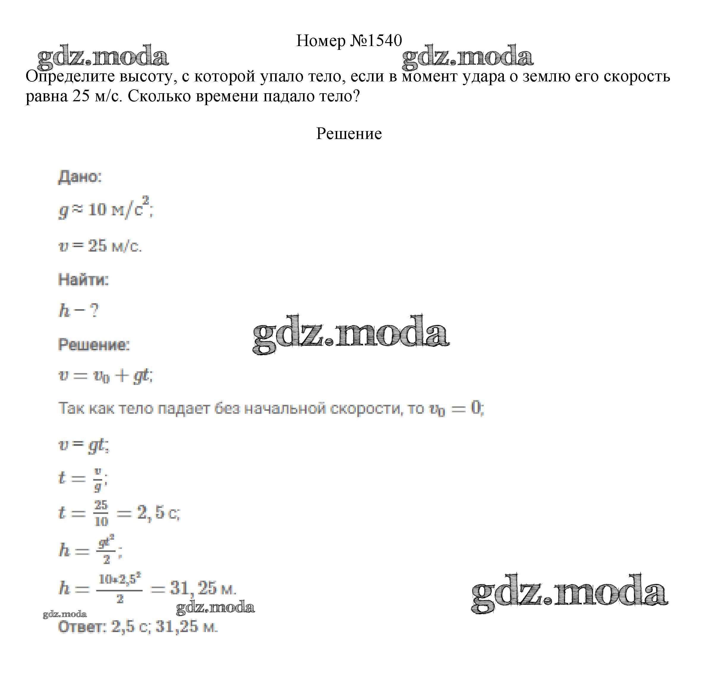 ОТВЕТ на задание № 1540 Сборник вопросов и задач по Физике 7-9 класс Марон Вертикаль