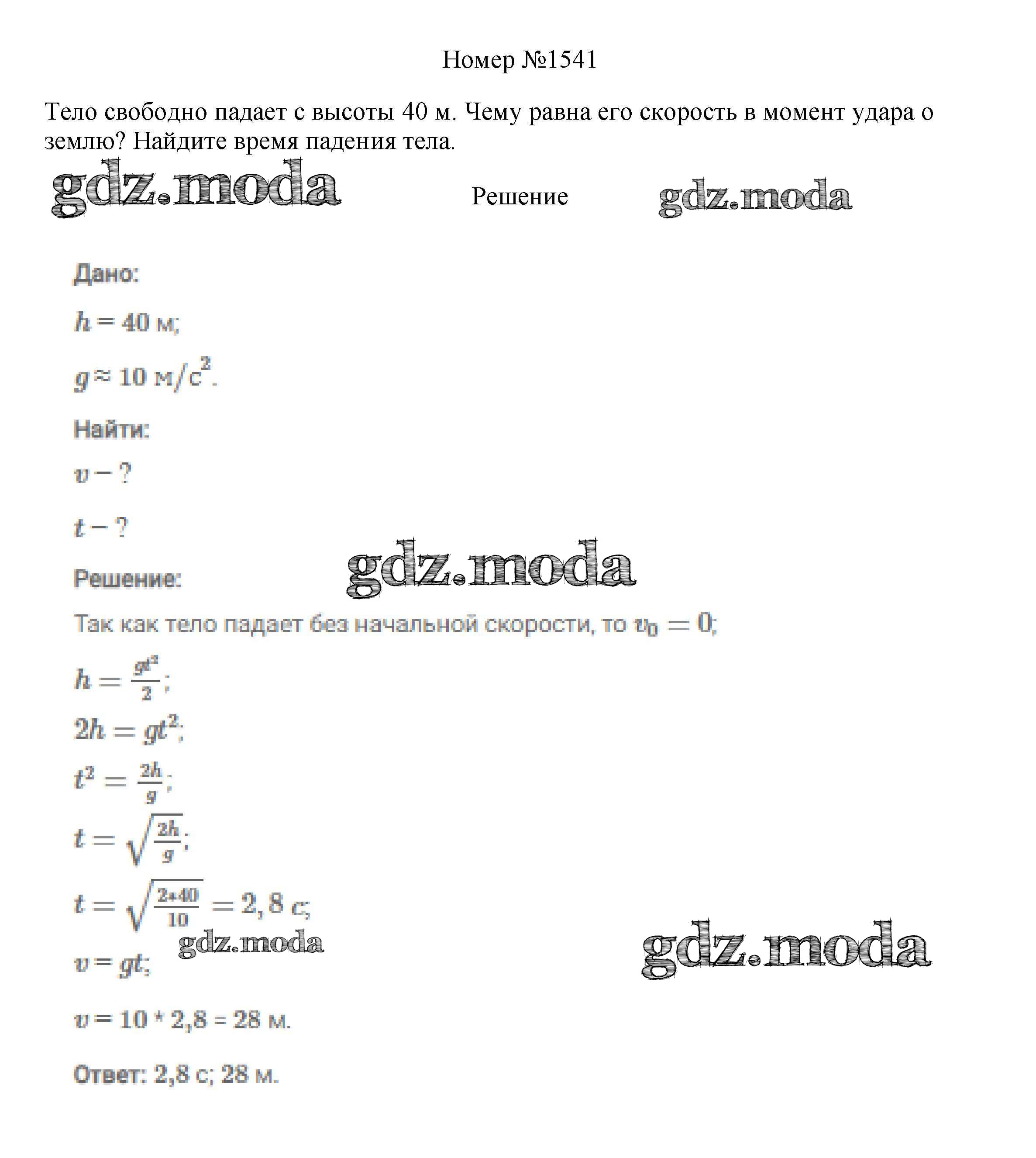 ОТВЕТ на задание № 1541 Сборник вопросов и задач по Физике 7-9 класс Марон Вертикаль