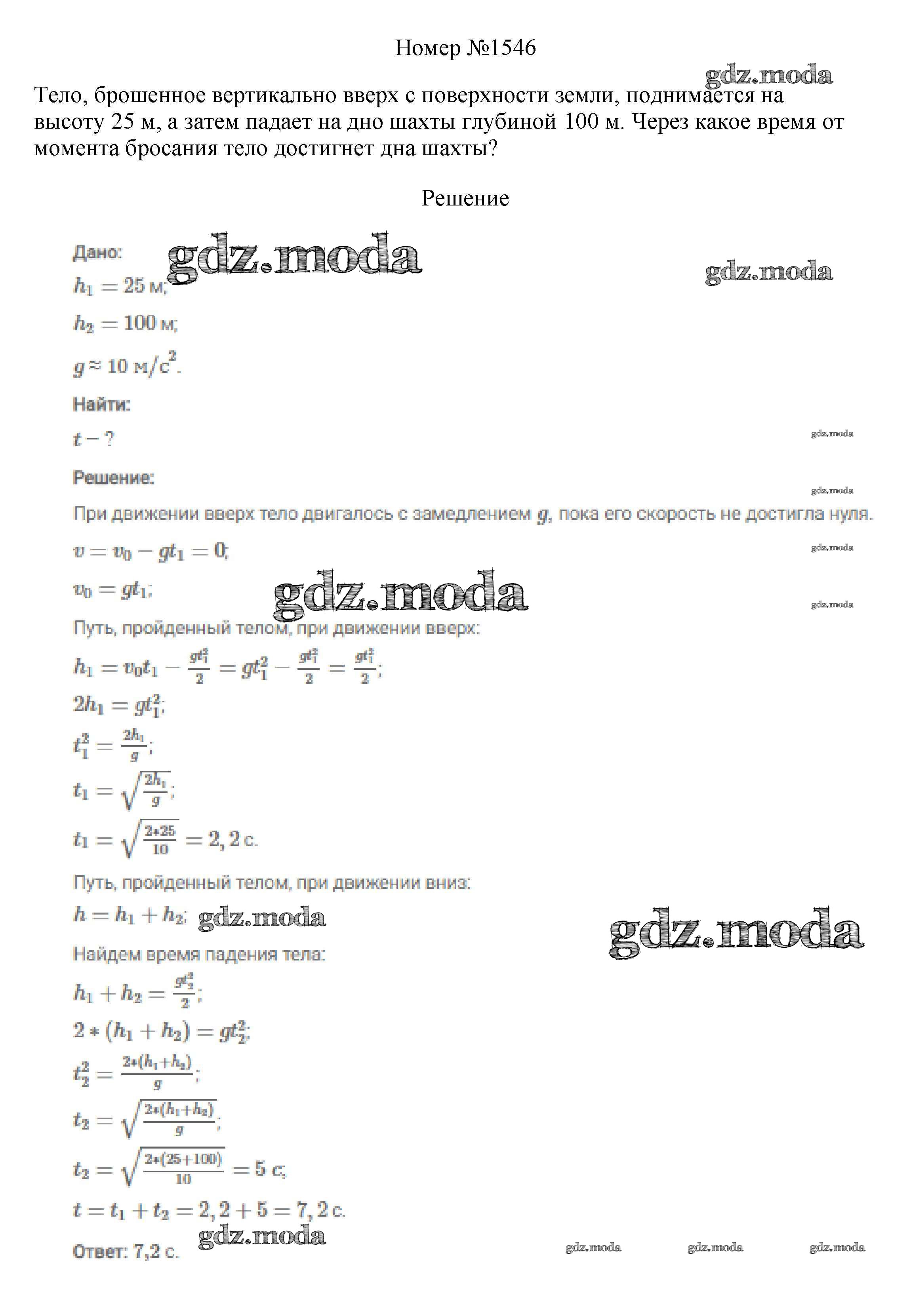 ОТВЕТ на задание № 1546 Сборник вопросов и задач по Физике 7-9 класс Марон Вертикаль